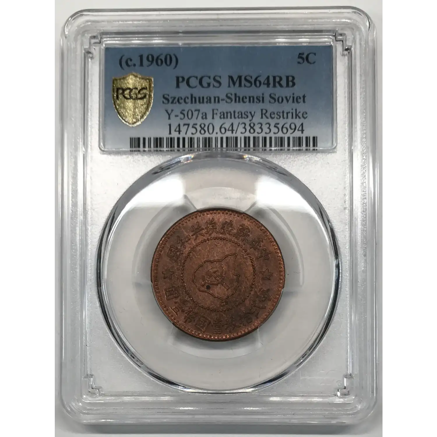c. 1960 CHINA, EARLY SOVIET Copper 5 CENTS PCGS MS-64 RB Y-507a Fantasy Restrike
