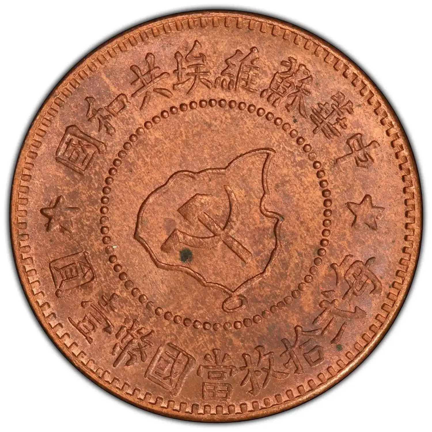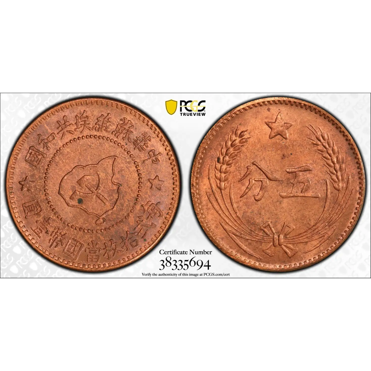 c. 1960 Chinese (Szechuan-Shensi) Soviet Republic Copper 5 Cents/Fen PCGS MS-64 RB