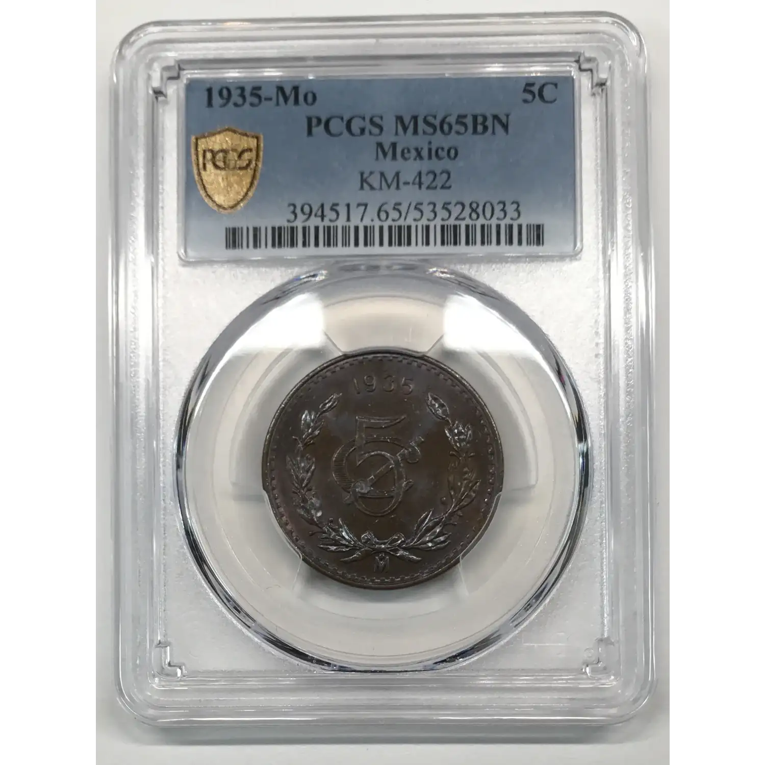 1935-Mo MEXICO Bronze 5 CENTAVOS PCGS MS-65 BN KM-422