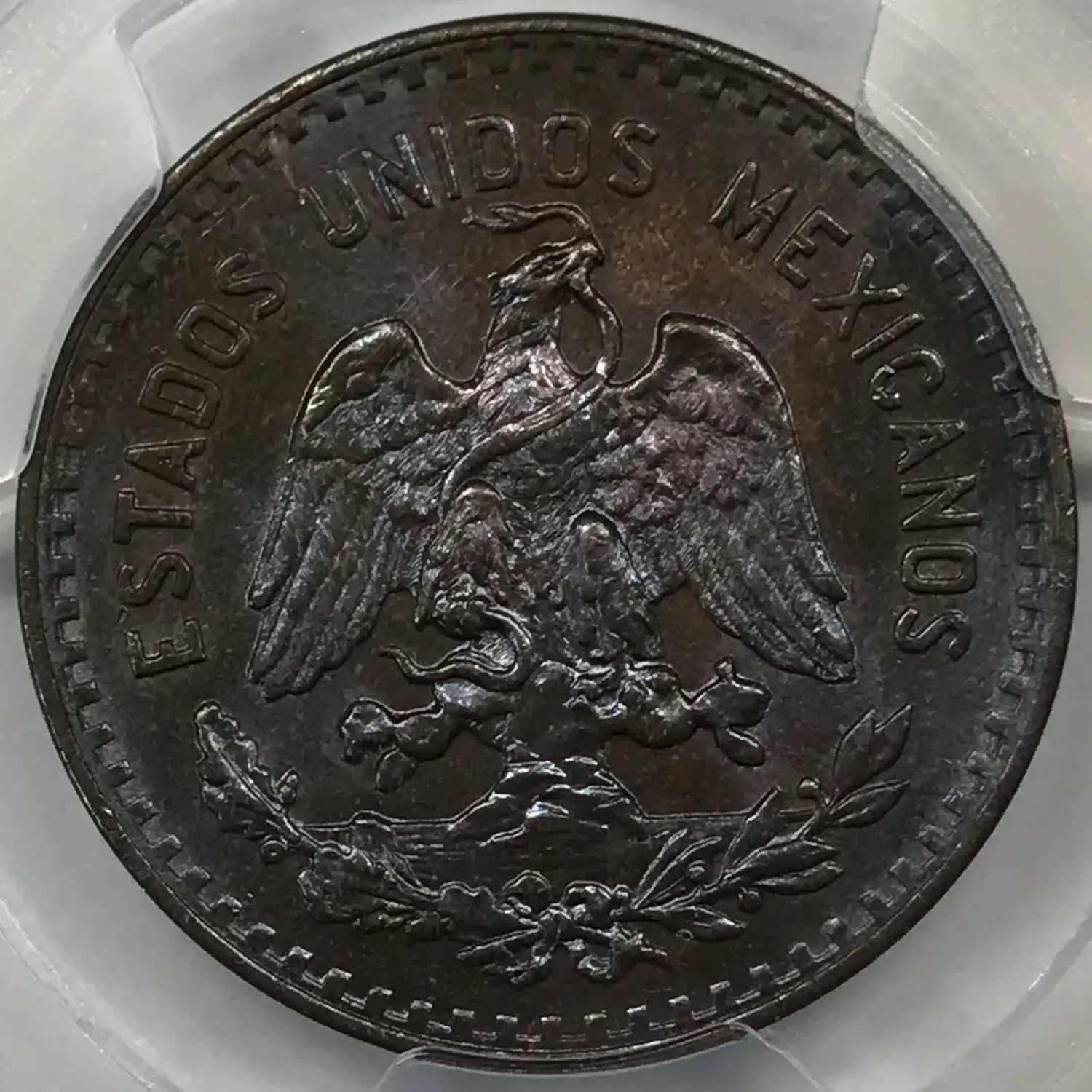 1935-Mo MEXICO Bronze 5 CENTAVOS PCGS MS-65 BN - Blue/Purple Rainbow Toning - KM-422