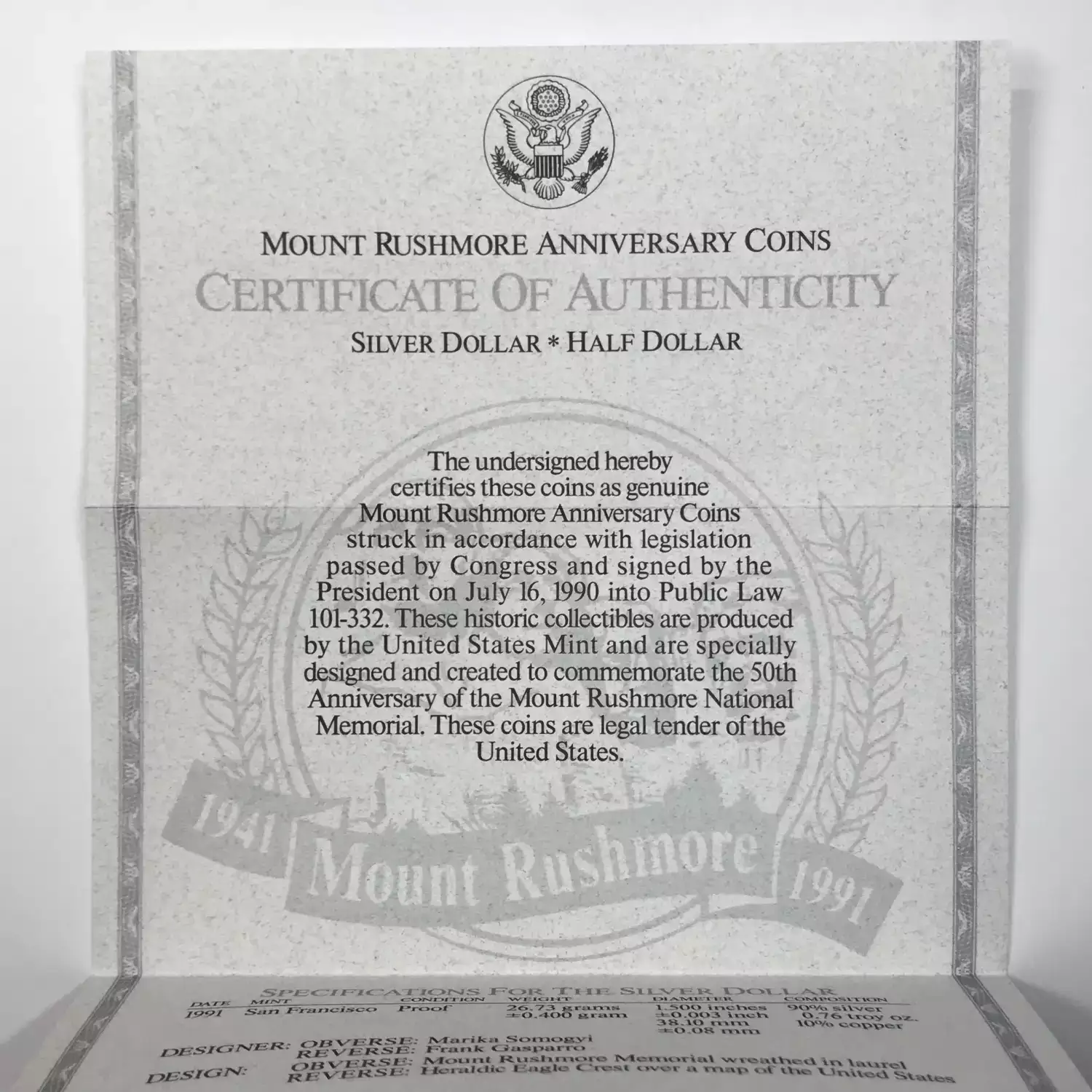 1991 Mount Rushmore Golden (50th) Anniversary Two-Coin Proof Set