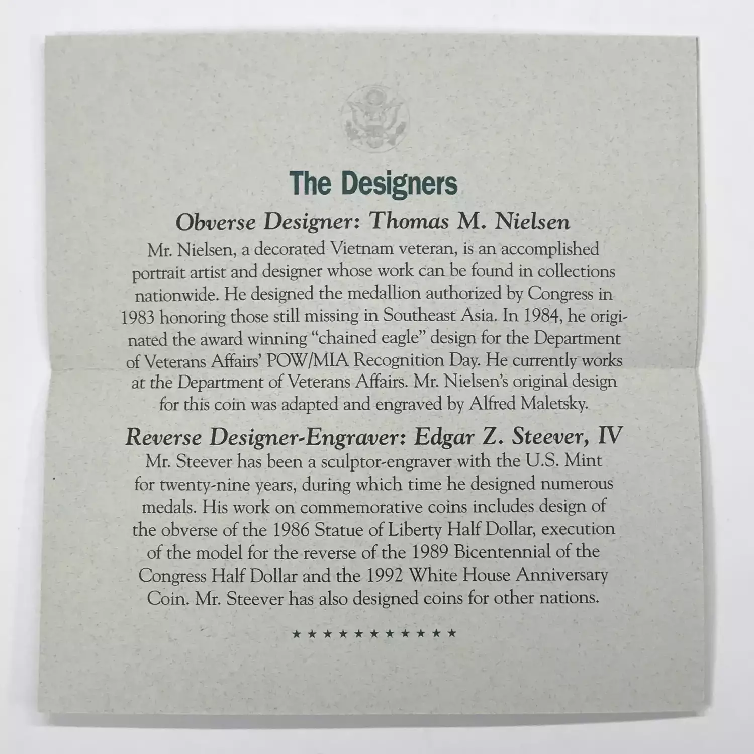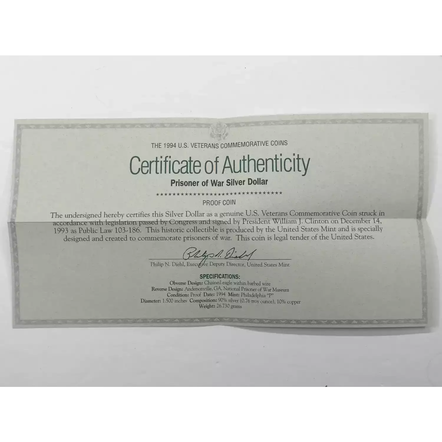 | Name | 1994-P Prisoner of War Proof Silver Dollar w OGP |
