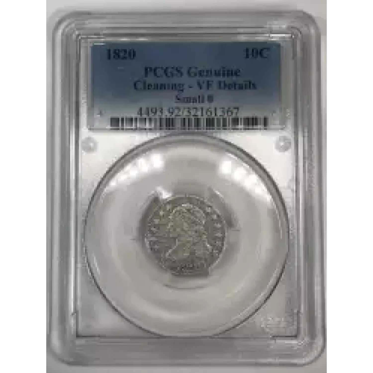 1820 Capped Bust Dime PCGS Genuine - VF Details (92 - Cleaned) Small 0