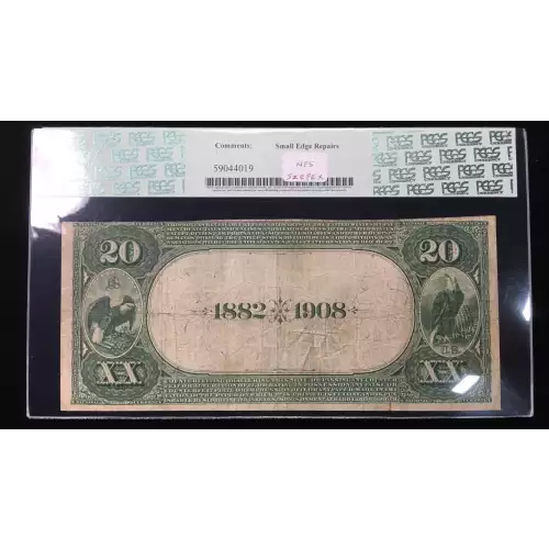 1882 DATE BACK $20 CLIFTON, AZ NATIONAL BANK NOTE #5821 – PCGS CURRENCY VERY FINE 20, small edge repairs.