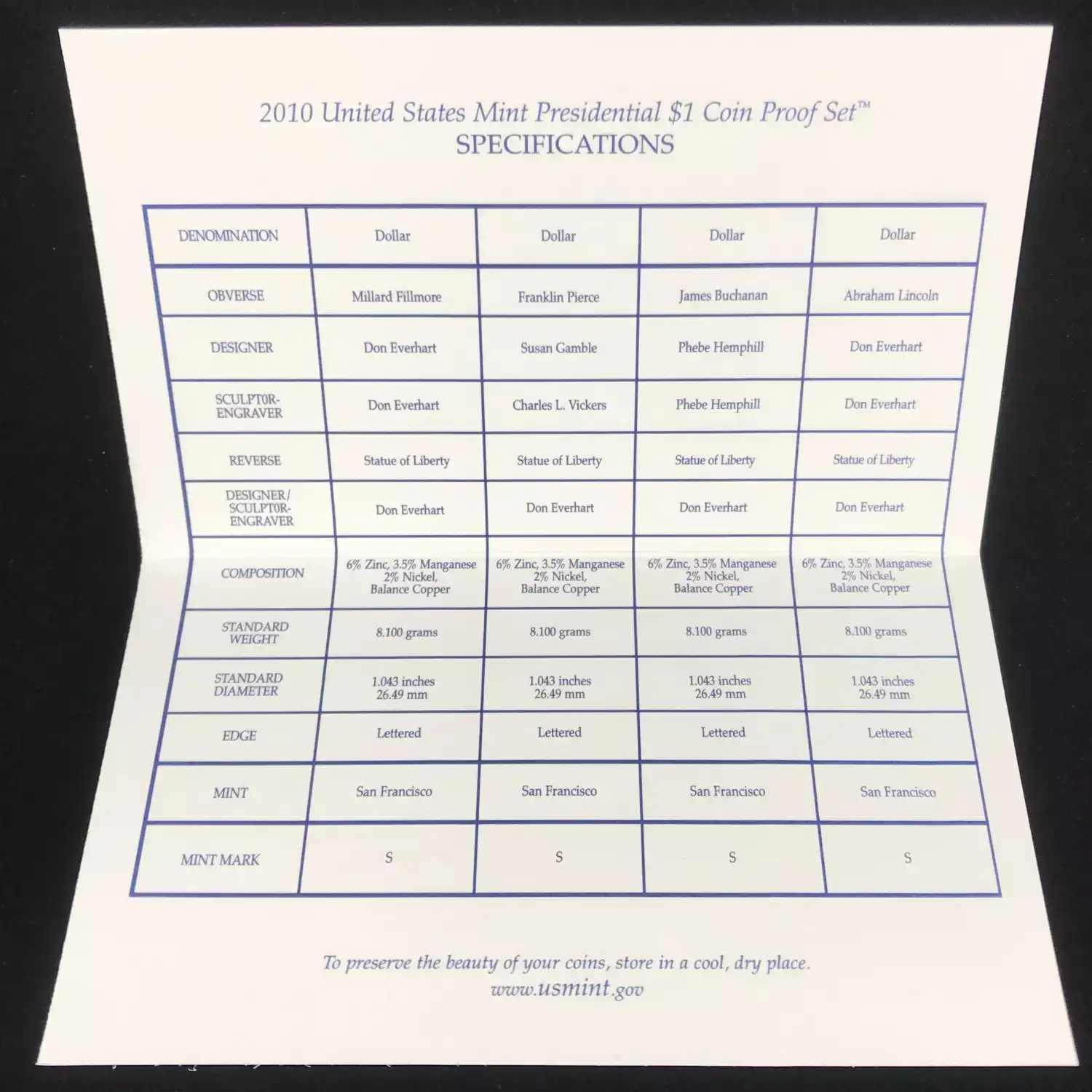 2010-S US Mint Presidential Dollar Coin Proof Set