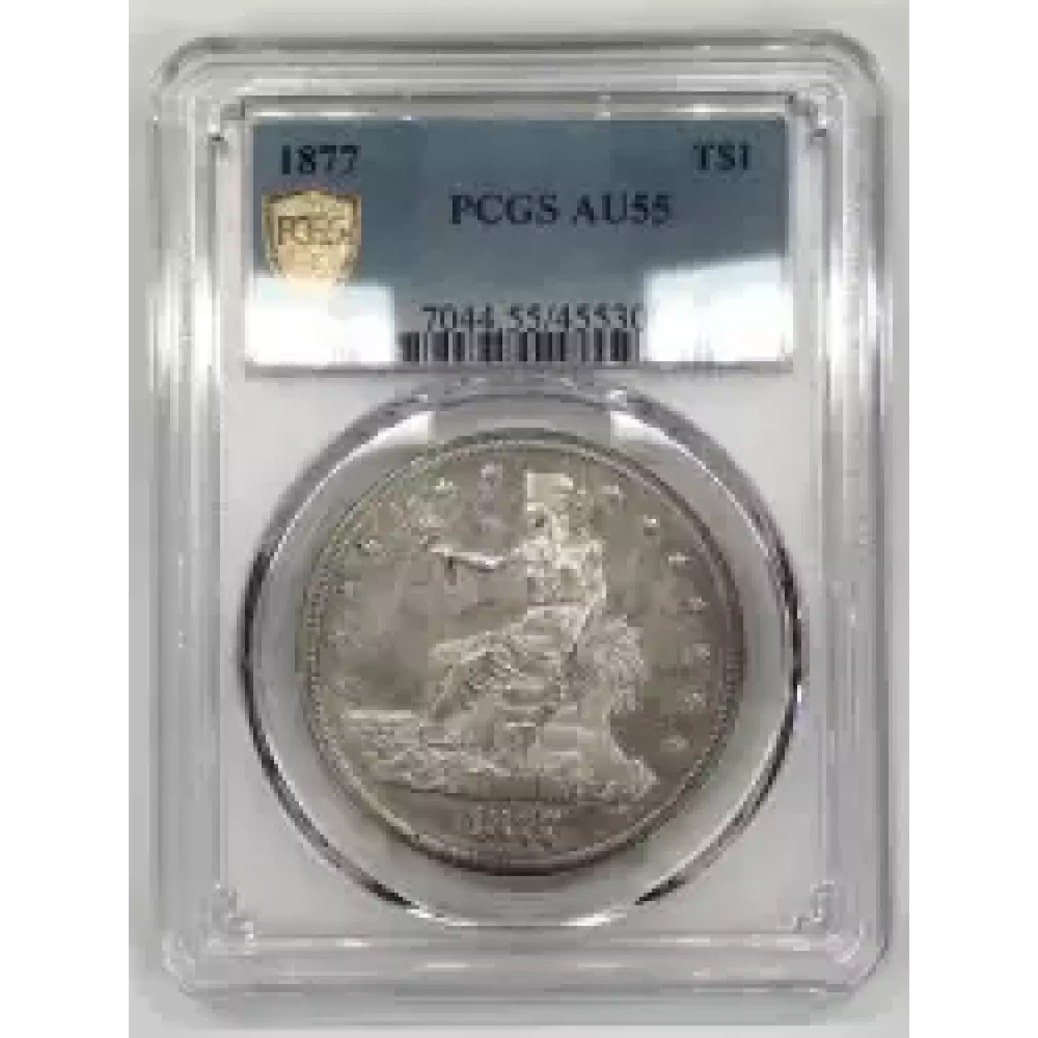 1877 Trade Dollar PCGS AU55. Nice fresh slab, straight from PCGS to our store.