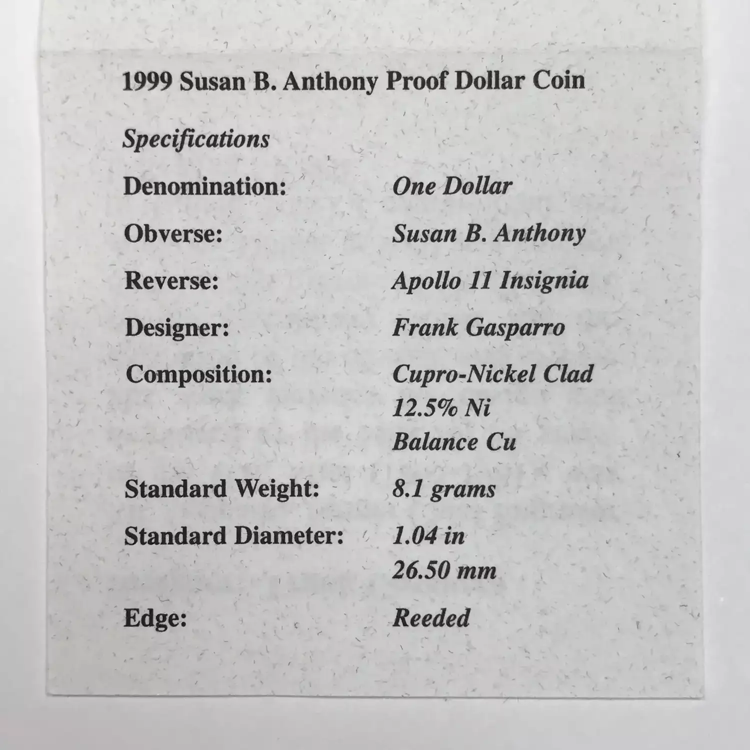 | Name | 1999-P Proof Susan B Anthony Dollar w OGP |