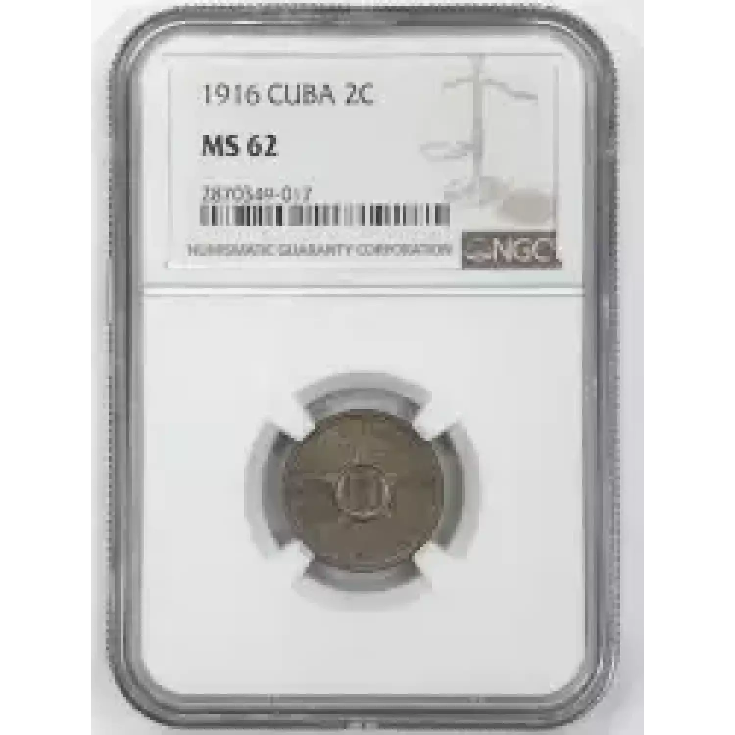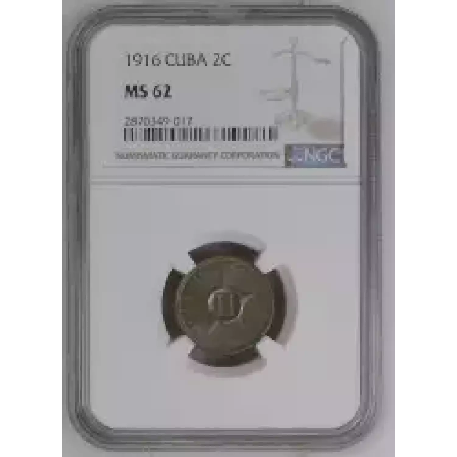 1916 Cuba 2 Centavos NGC MS-62 KM#A10