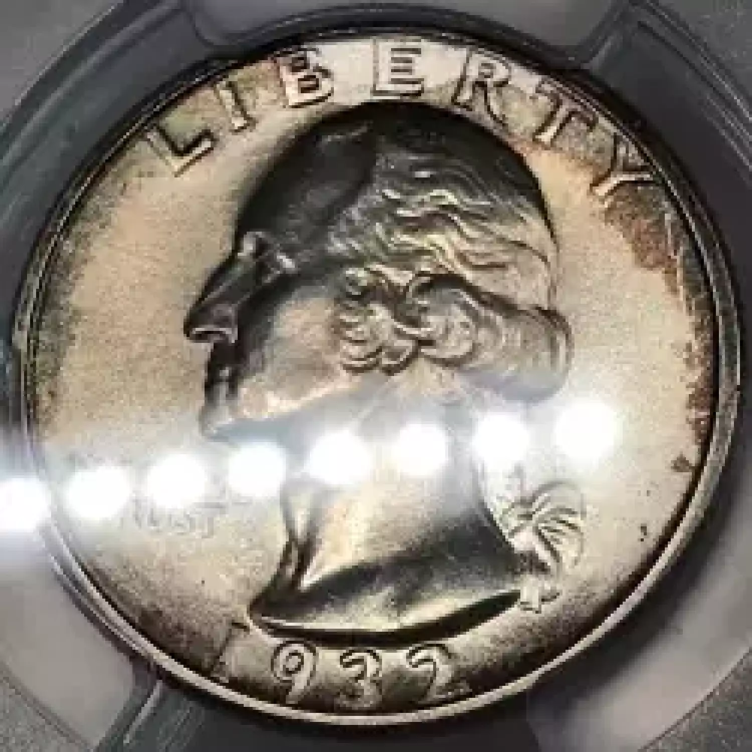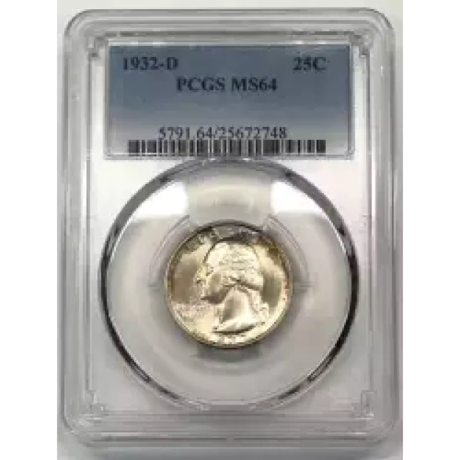 1932 D Silver Washington Quarter PCGS MS-64 - Key Date Coin - Gentle Rainbow Toning Near Rim/Edge