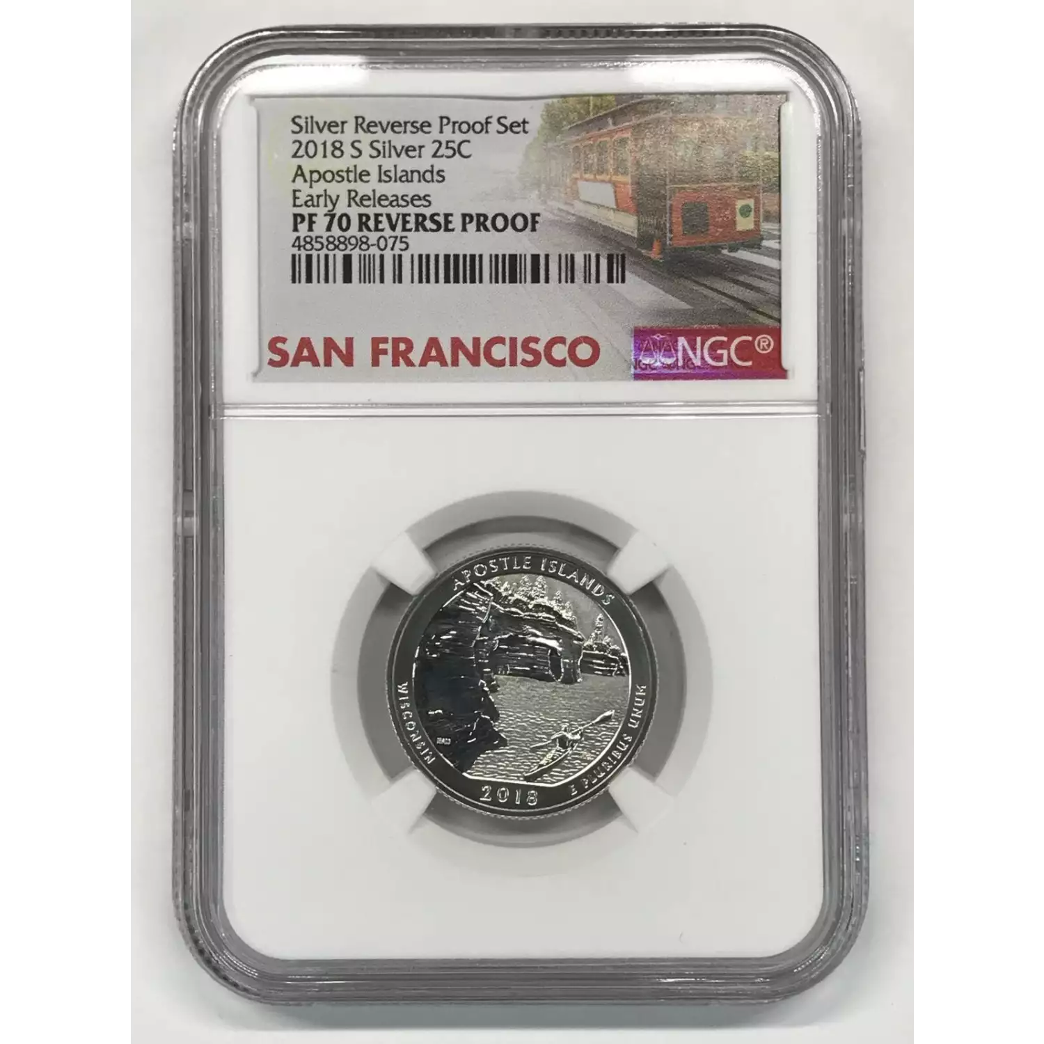 2018-S Silver Reverse Proof 10-Coin Set NGC PF70 Early Releases Trolley Label