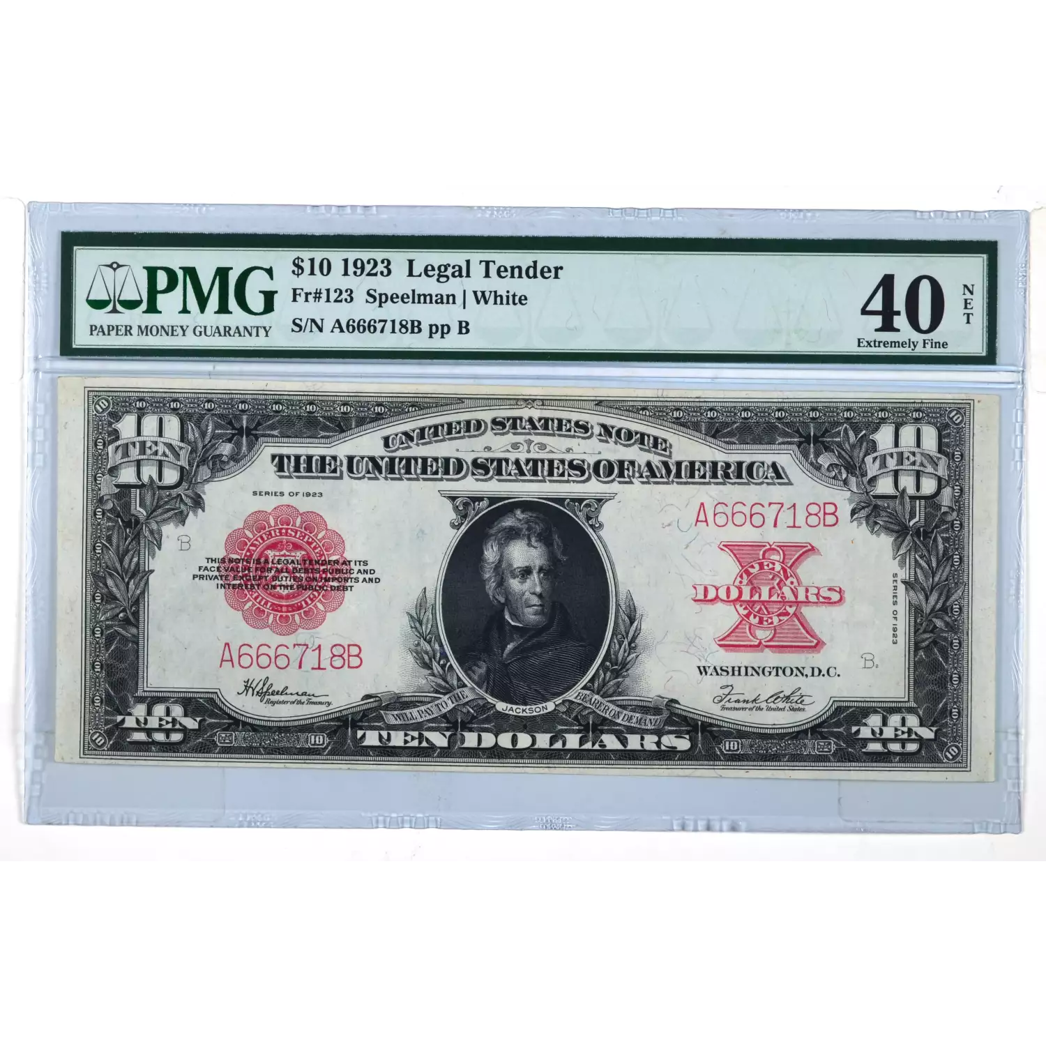 1923 $10 Poker Chip Legal Tender Note FR 123 PMG XF 40 NET - closed pinhole, minor rust