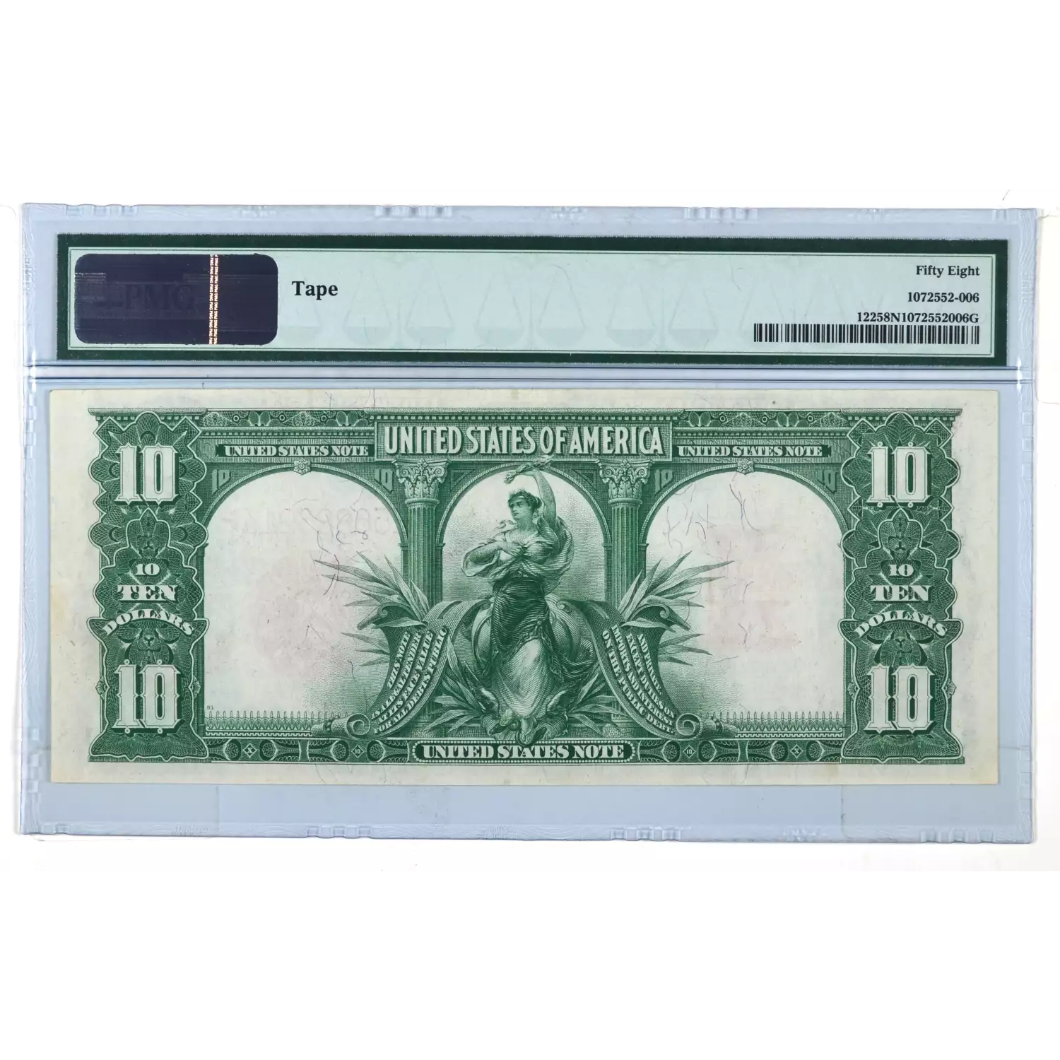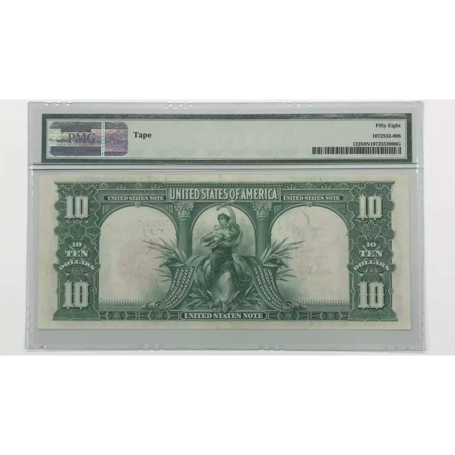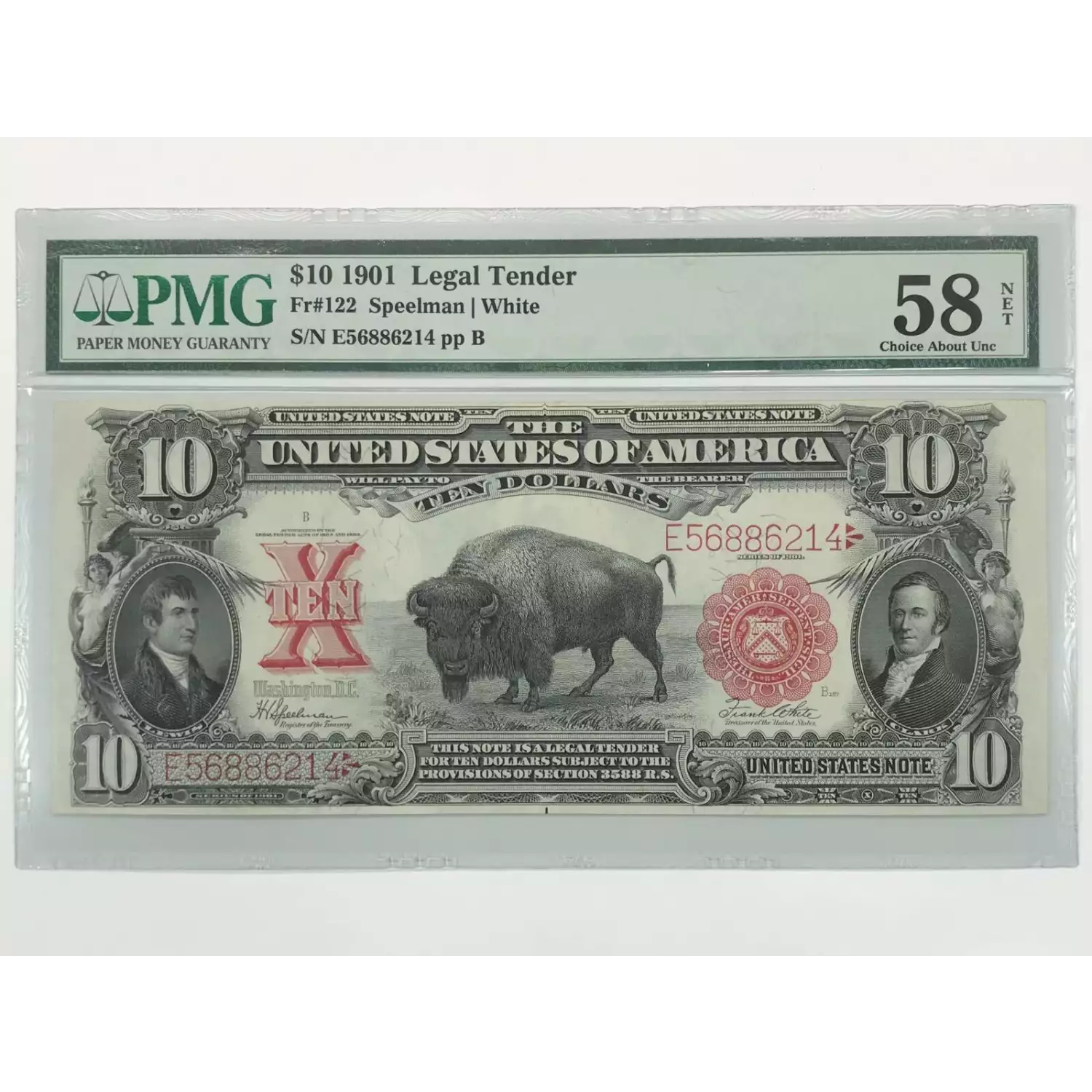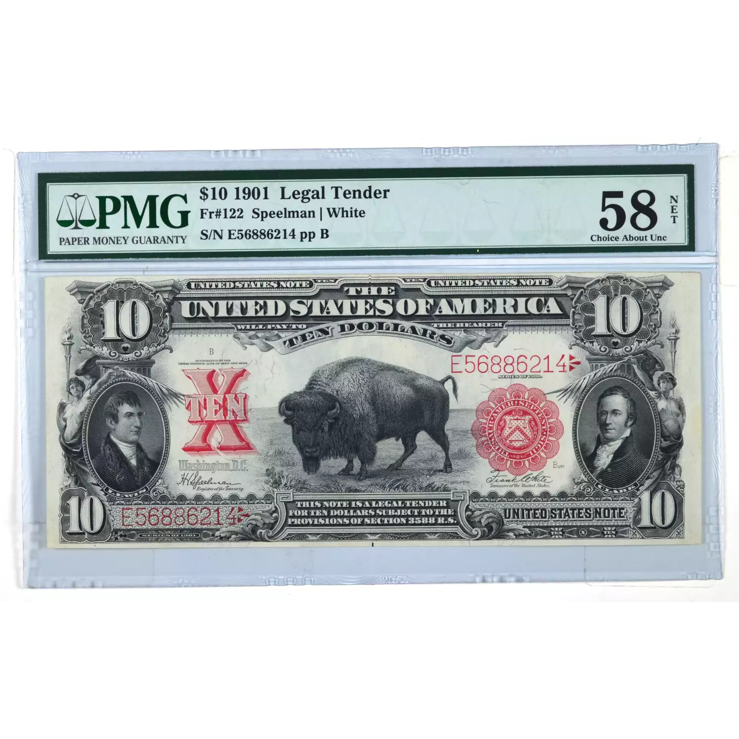 1901 $10 Bison Legal Tender Note FR 122 PMG AU 58 NET - tape (very minor, top center reverse)