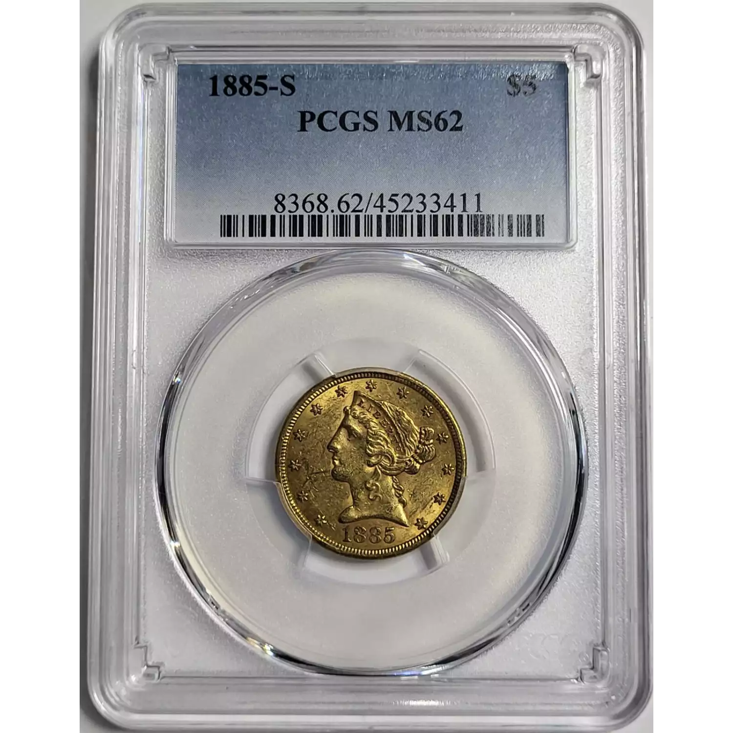 1885-S $5 Gold Liberty Head Half Eagle PCGS MS-62