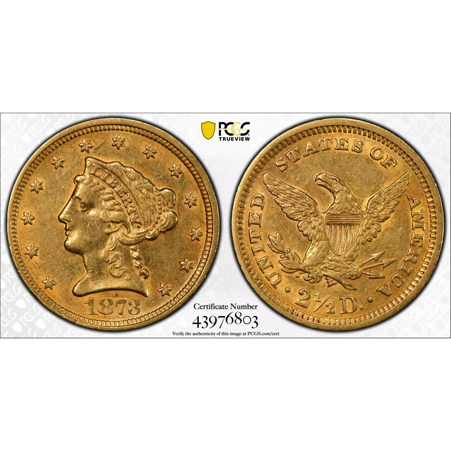1873 $2.50 Gold Liberty Head Quarter Eagle PCGS AU-53 Closed 3