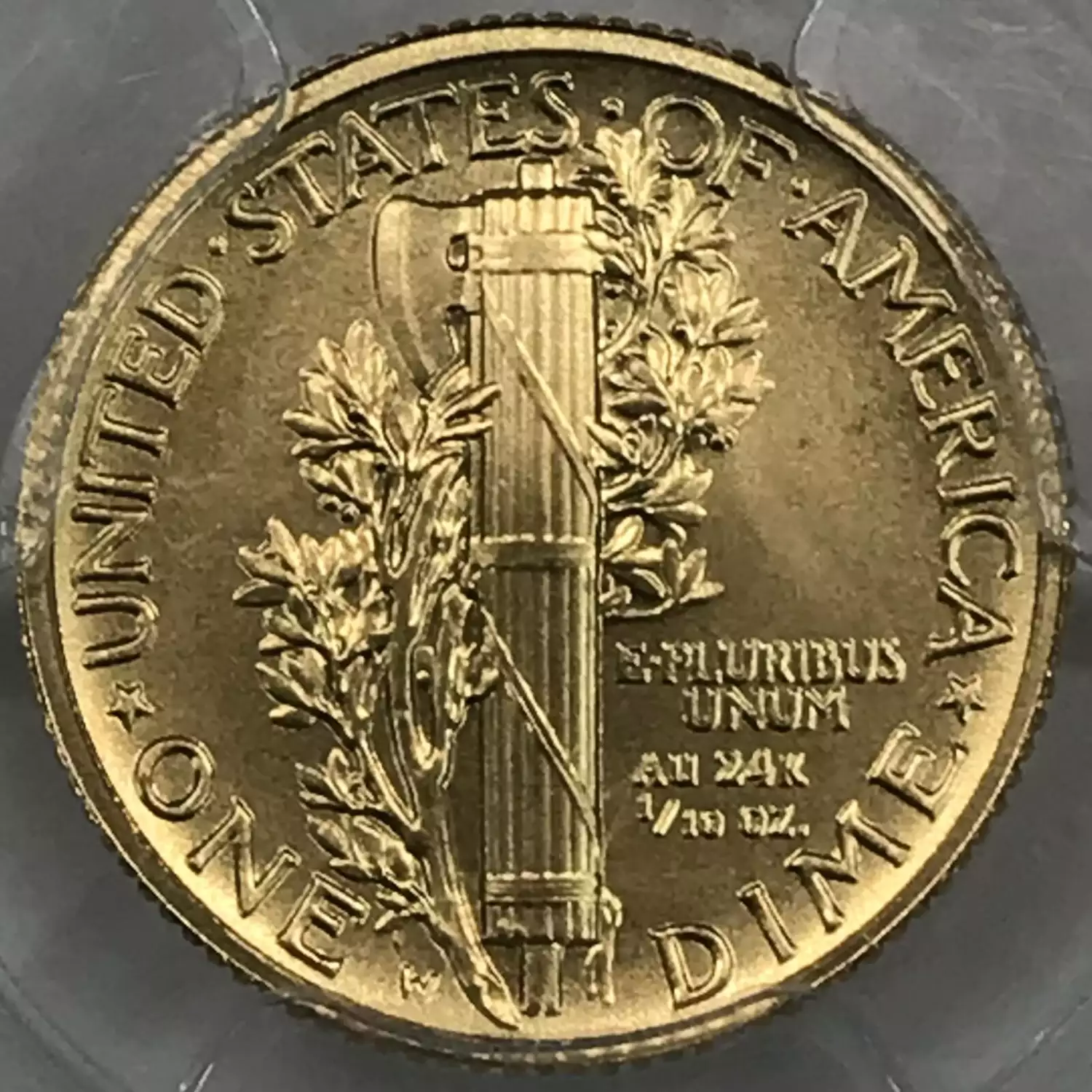 2016-W 1/10 oz 24K Gold Mercury Dime Centennial PCGS SP-70 First Strike