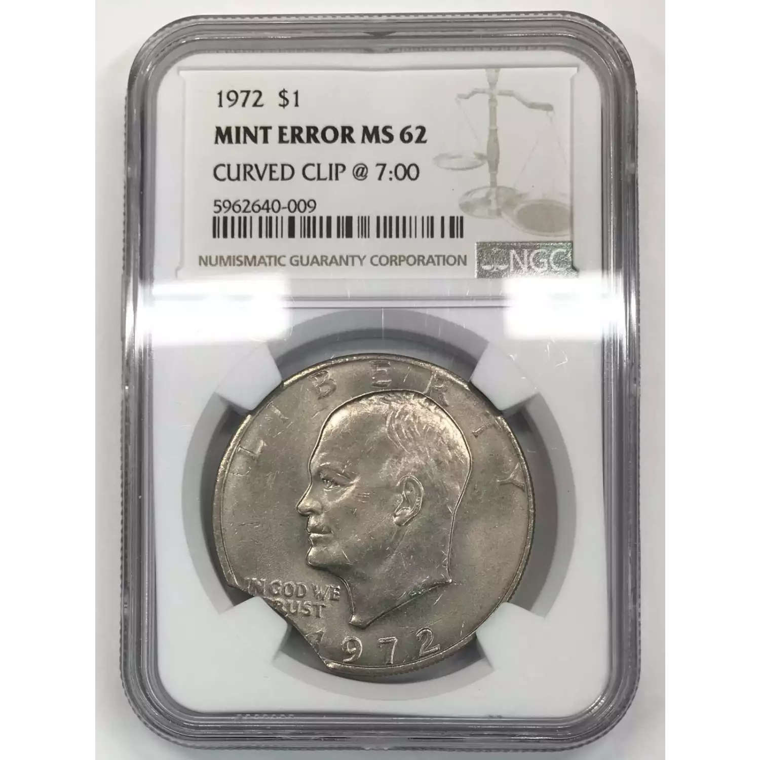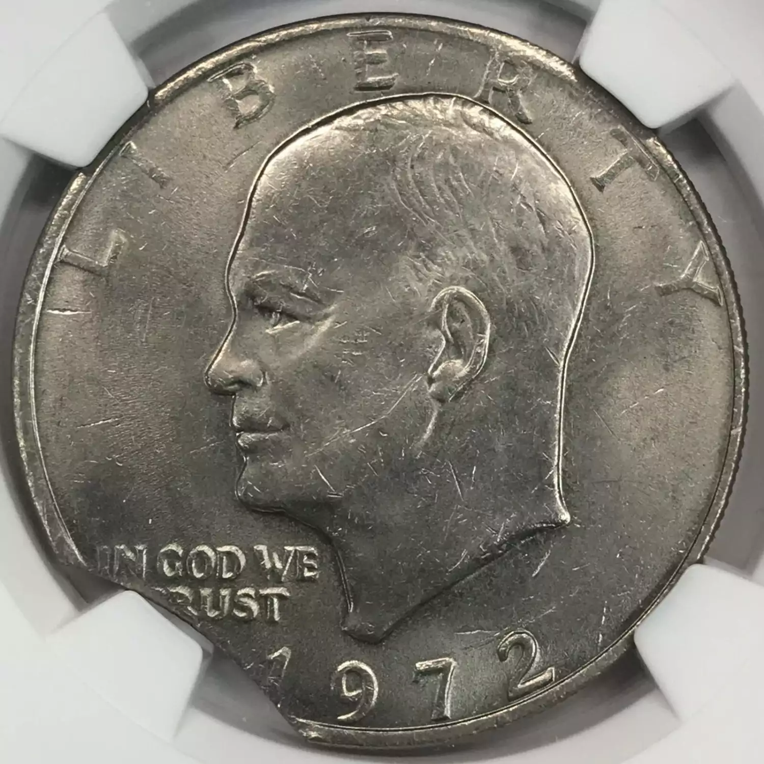 1972 Clad Ike Eisenhower Dollar NGC MS-62 Mint Error Curved Clip @ 7:00