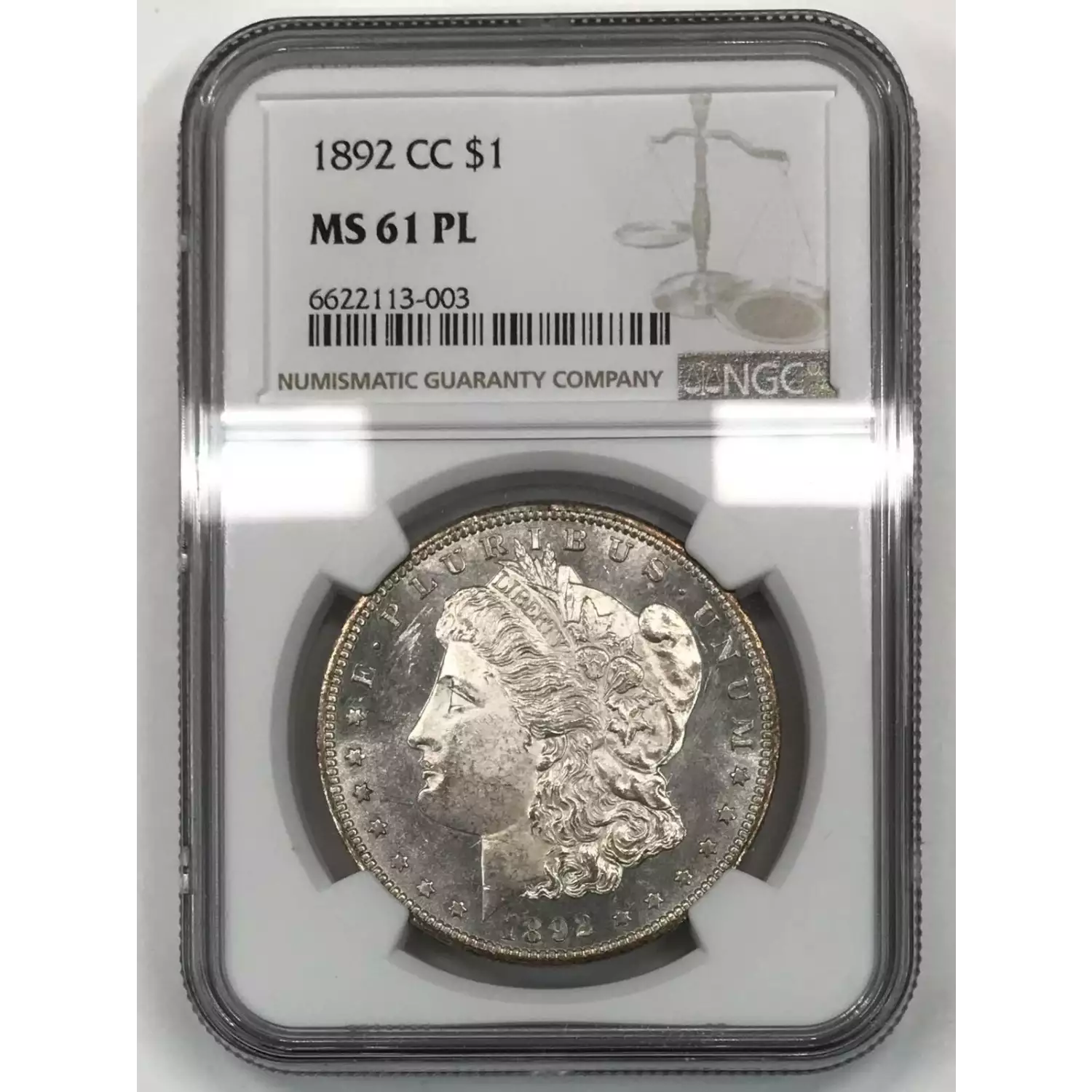 1892 CC Morgan Silver Dollar NGC MS-61 PL - nice attractive coin, better eye appeal than an MS61 - Nice fresh slab, straight from NGC to our store.