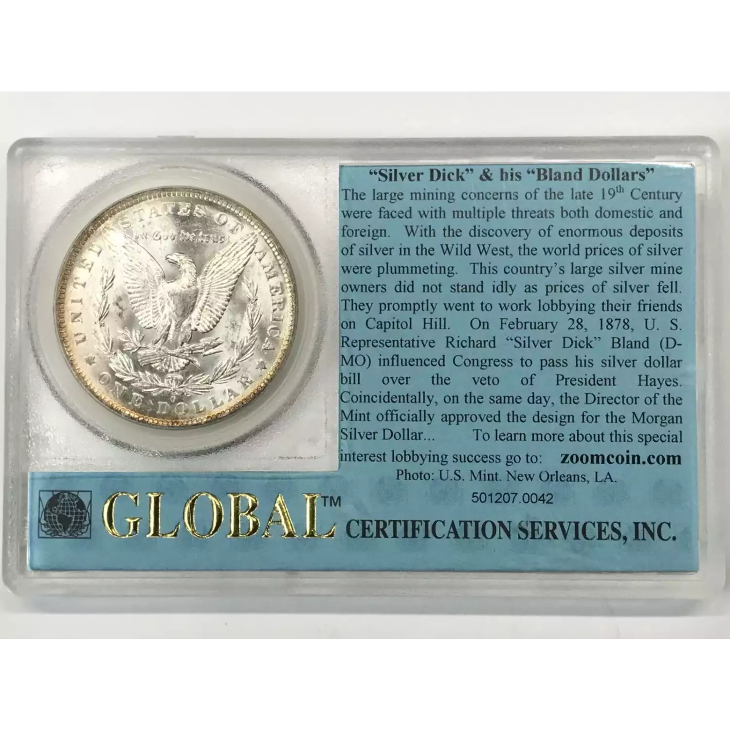 1883-O Morgan Silver Dollar Global Holder - BU - VAM-36B Clashed Eagle's Neck