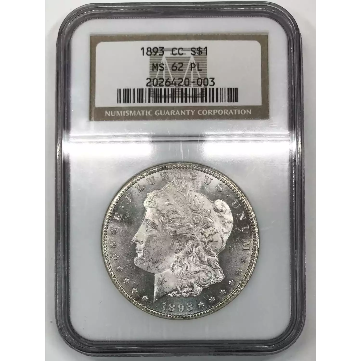1893 CC Morgan Silver Dollar NGC MS-62 PL