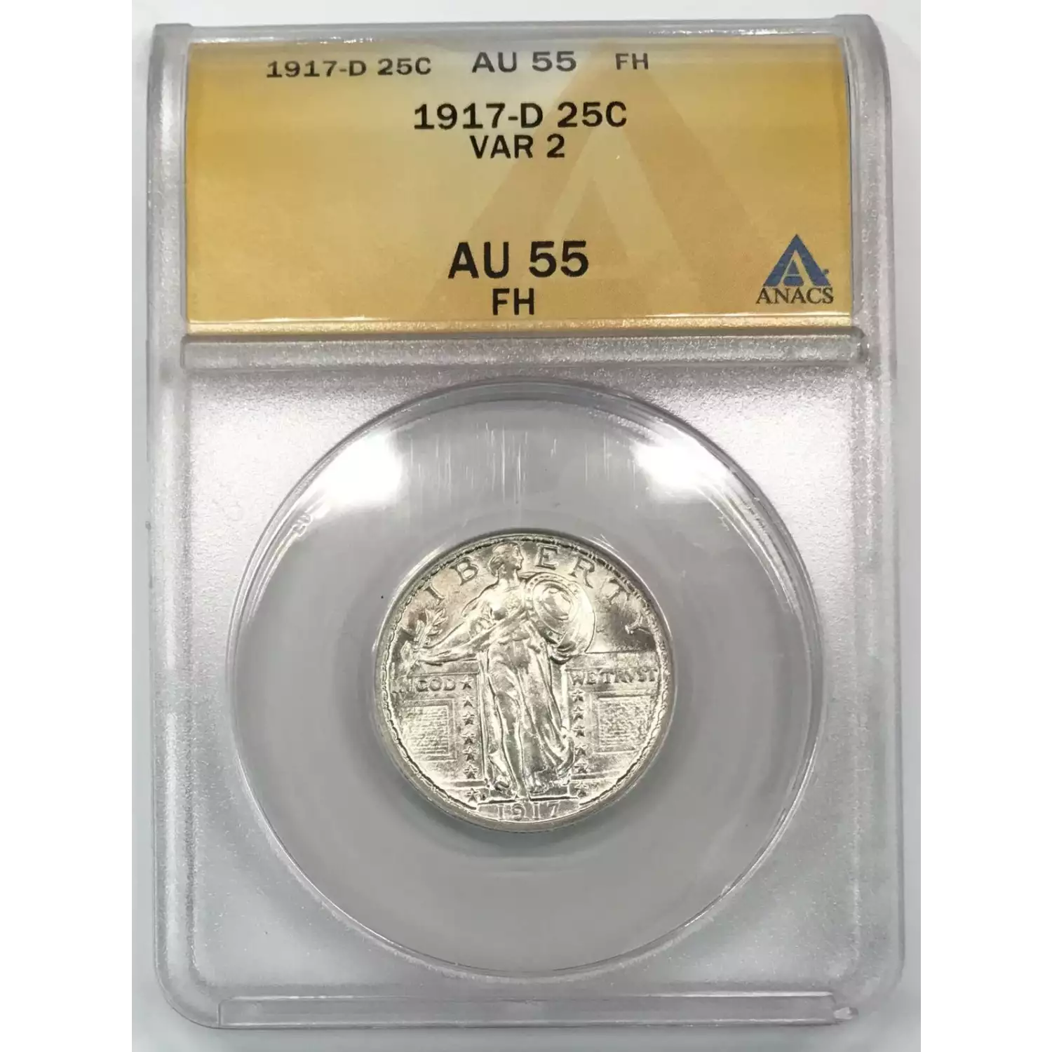 1917 D Type 1 Standing Liberty Quarter ANACS AU-55 FH
