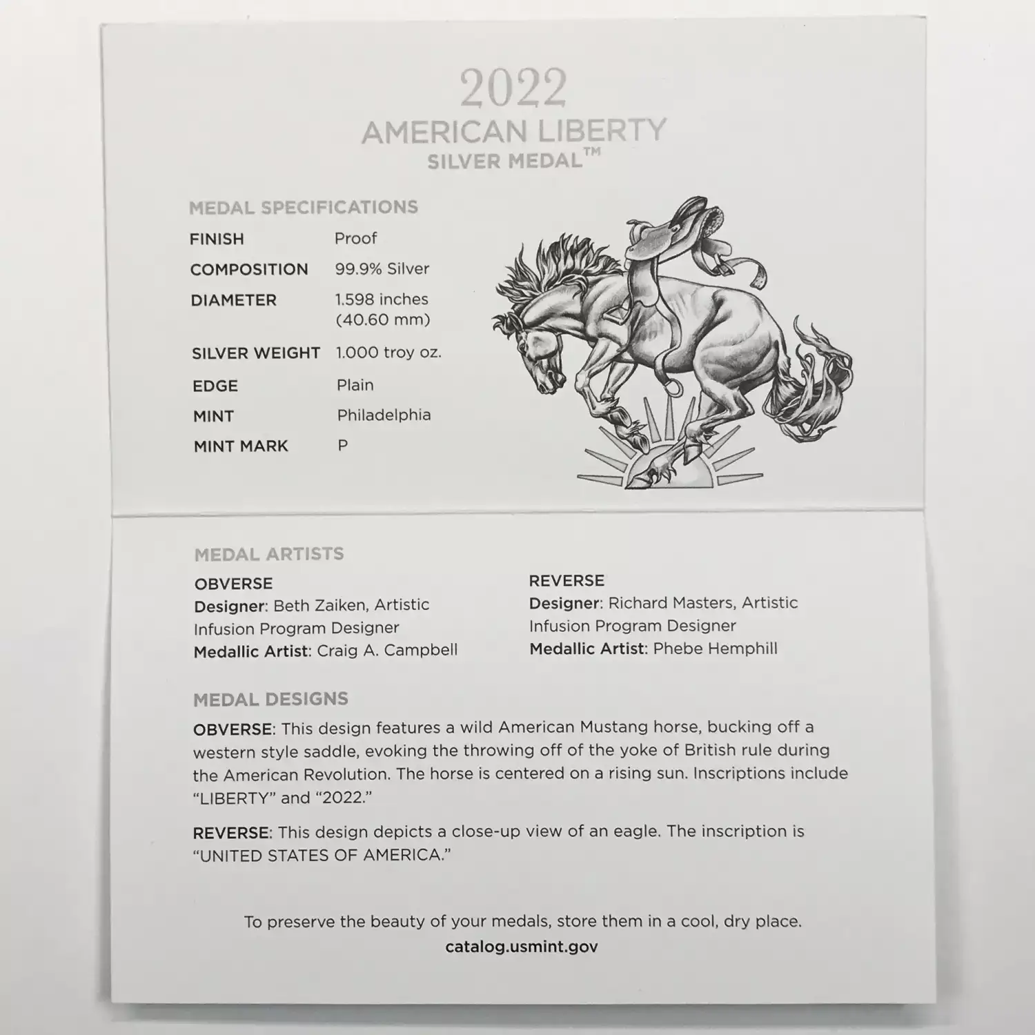 | Name | 2022 American Liberty 1 oz proof silver medal w OGP |