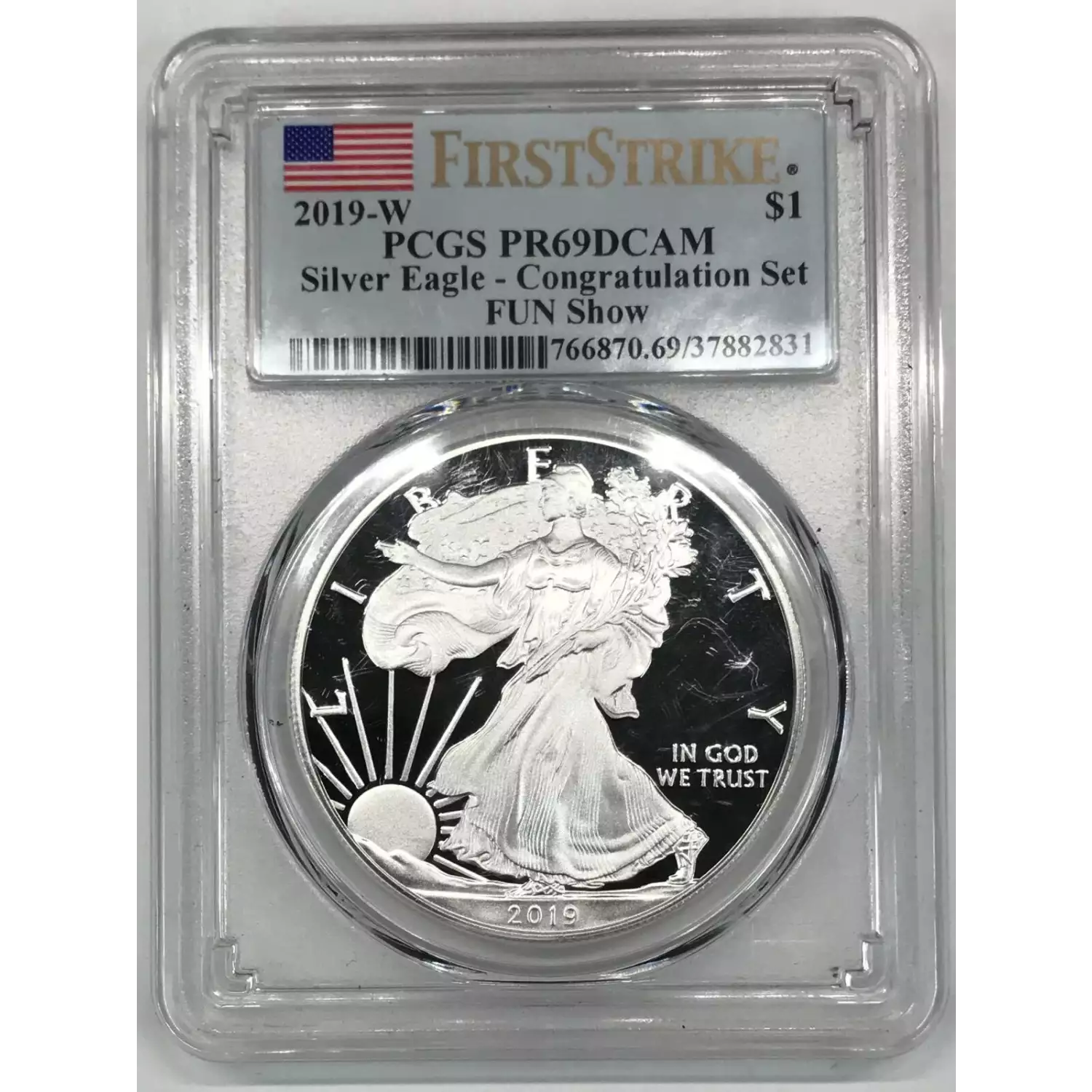 2019-W Proof Silver Eagle PCGS PR69DCAM - Congratulation Set - FUN Show - First Strike - slab has some scratches/scuffs