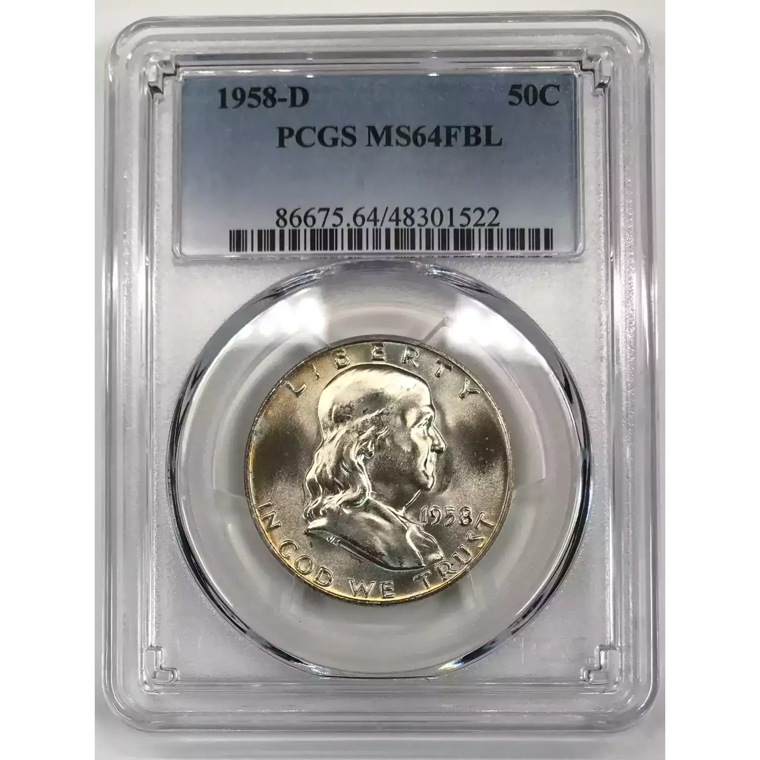 1958-D Franklin Half Dollar PCGS MS-64 FBL