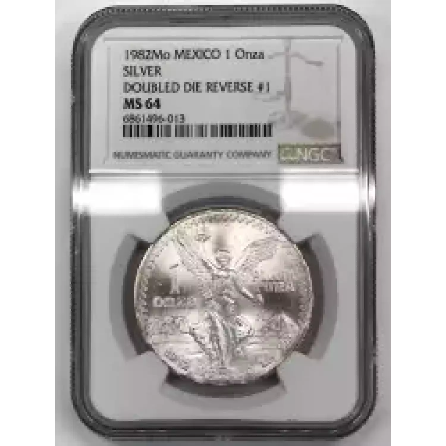 1982-Mo Mexico 1 oz Silver Libertad Onza NGC MS-64 DOUBLED DIE REVERSE #2 - *NGC label is incorrect, this is the harder to find DDR #2, not #1* - (NGC calls it a DDR, PCGS calls it a DDO)