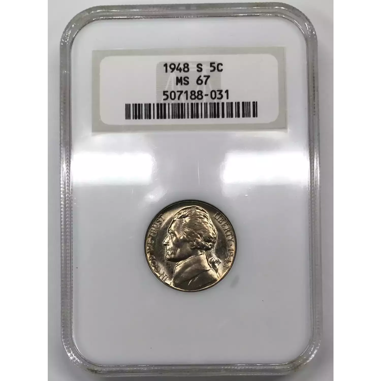 1948 S Jefferson Nickel NGC MS-67 - old fatty no-line holder