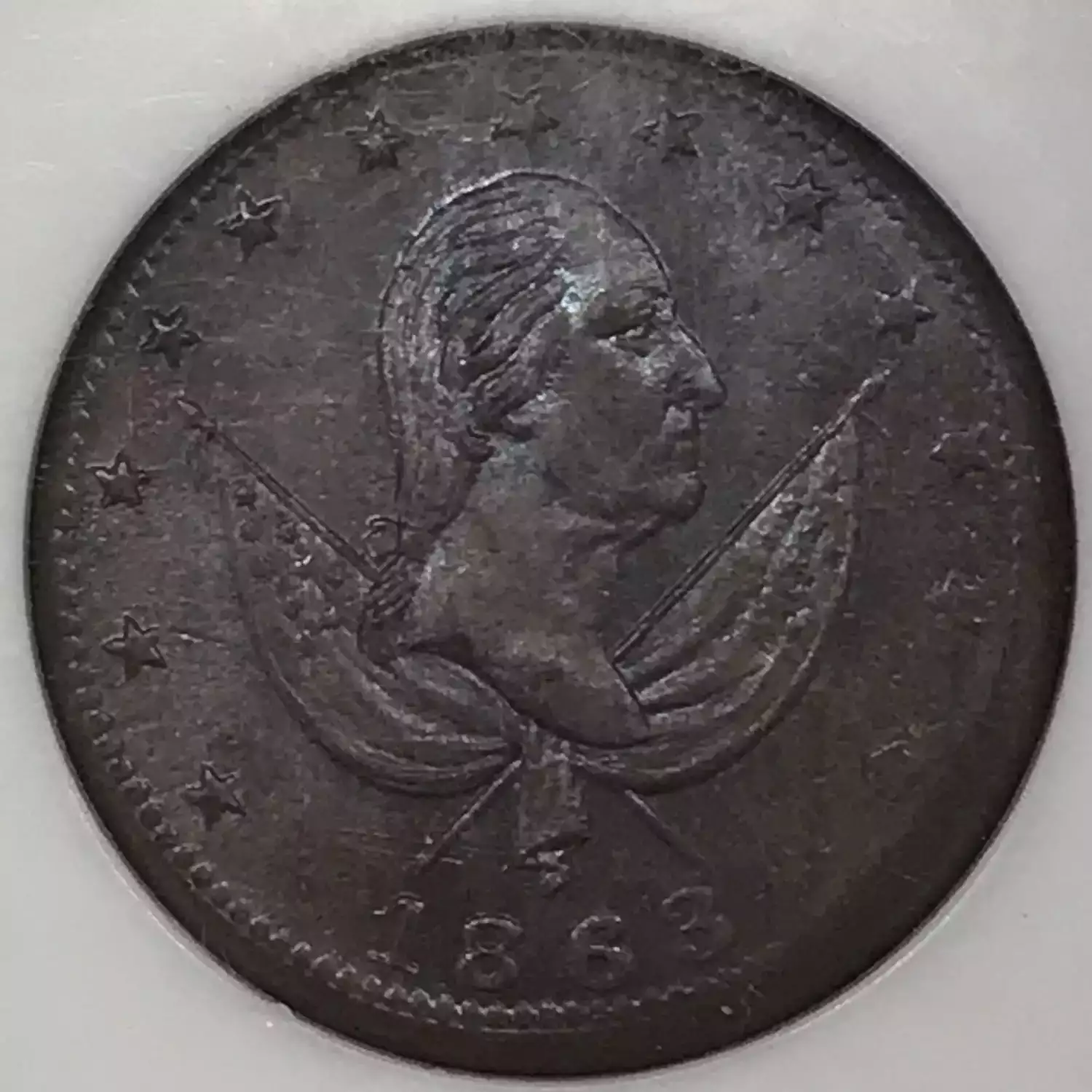 1863 George Washington EXCHANGE Civil War Token F-117/420 a - NGC MS63 BN - Red/Blue/Purple Rainbow Toning