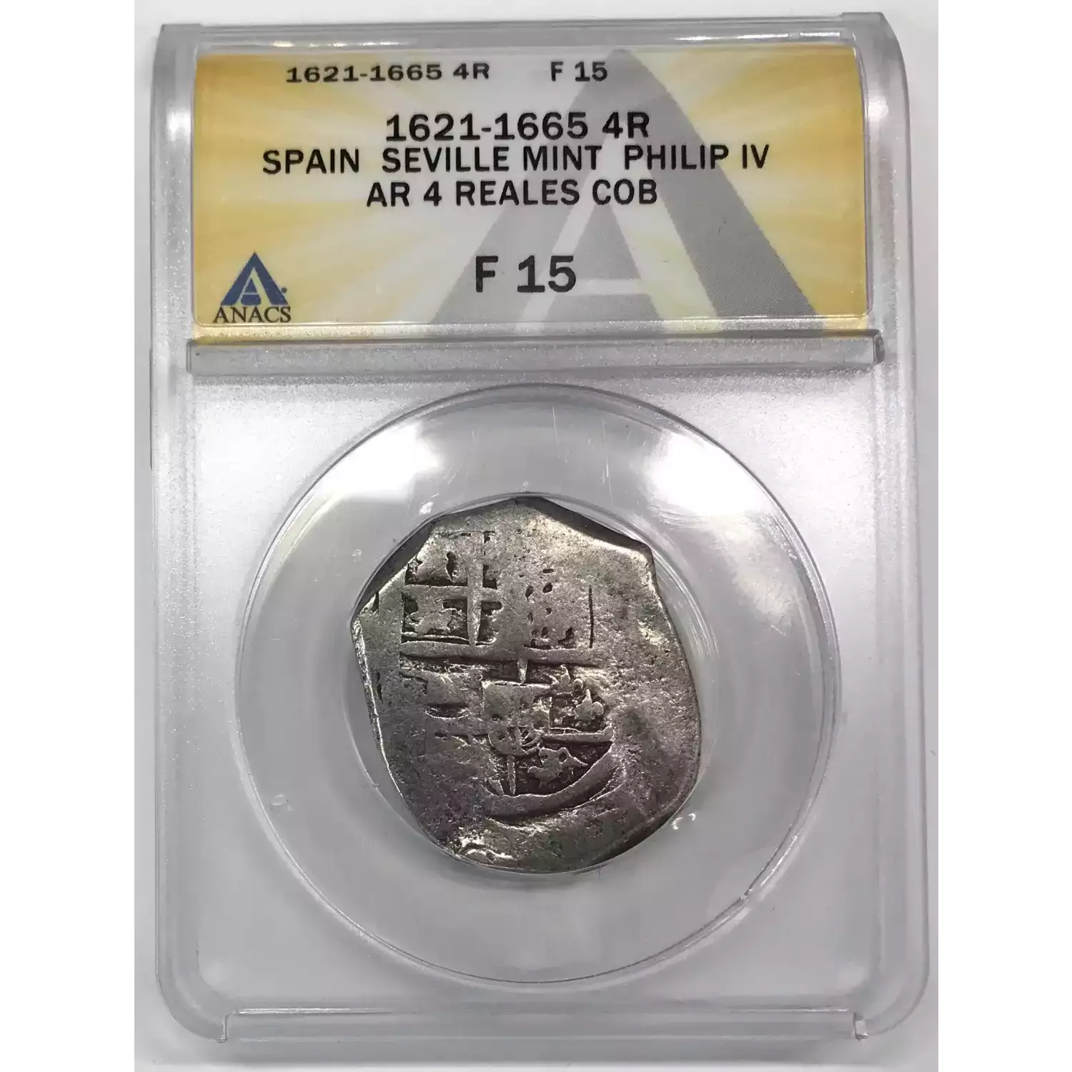 1621-1665 Spain Silver 4 REALES ANACS F-15 Seville Mint, Philip IV
