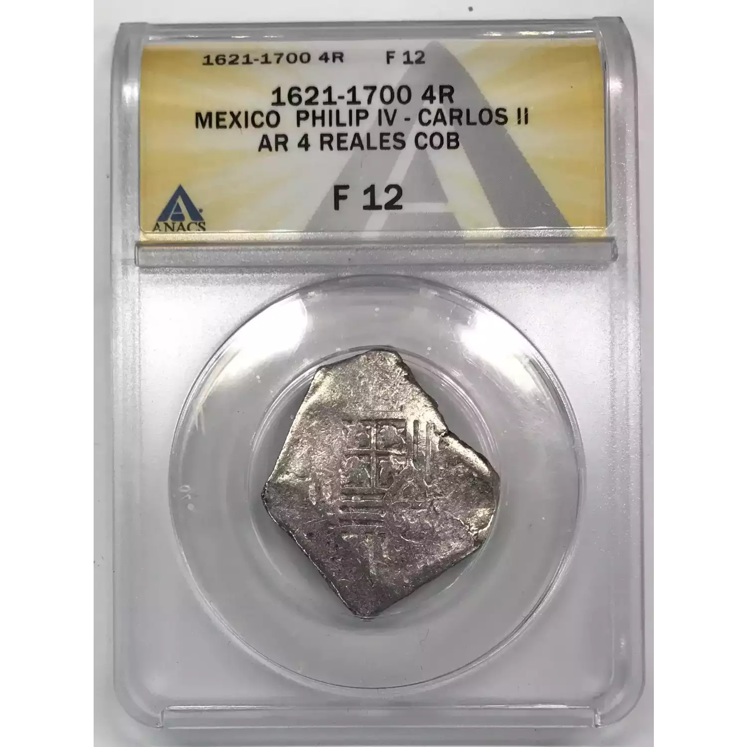 1621-1700 Mexico Silver 4 REALES Cob ANACS F-12 - Philip IV - Carlos II