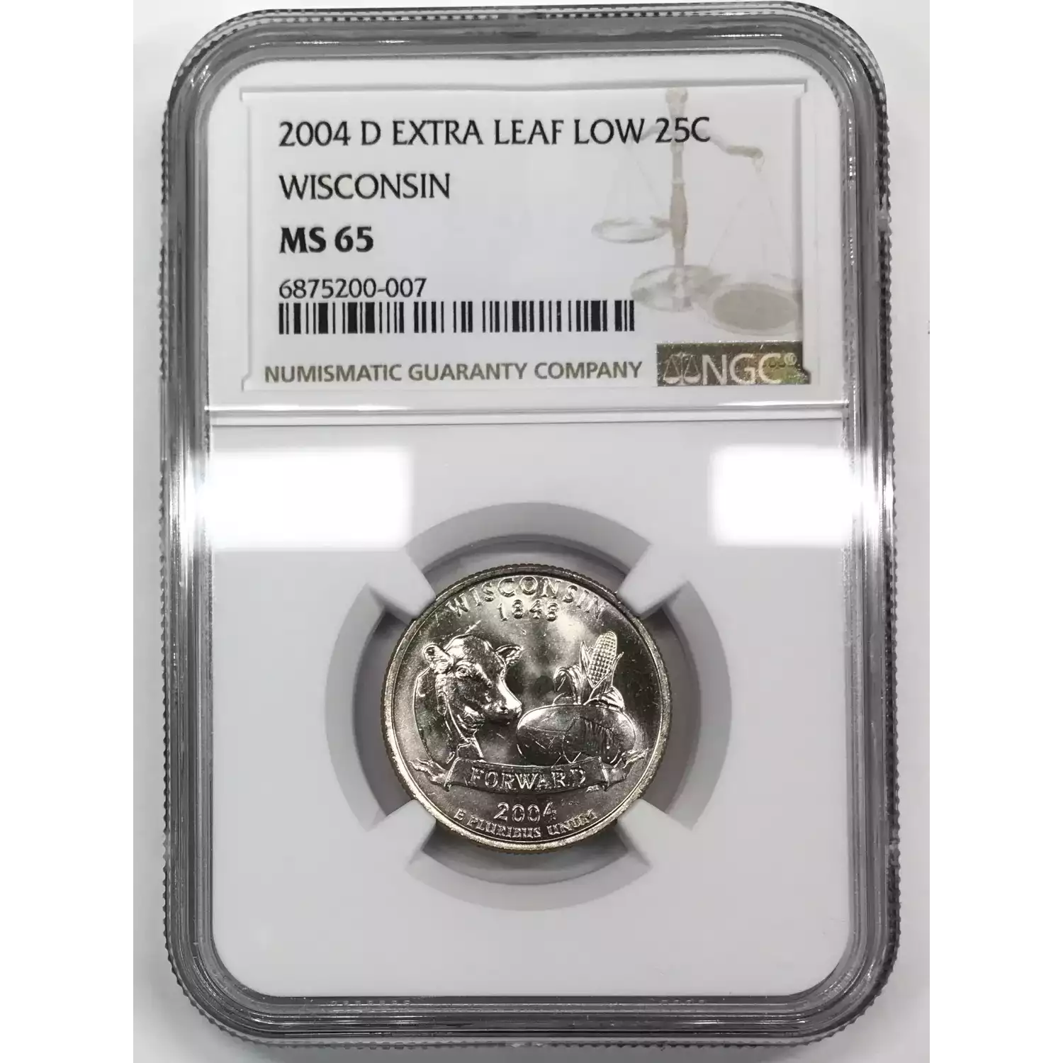 2004-D EXTRA LEAF LOW WISCONSIN State Quarter NGC MS-65 - Nice fresh slab, straight from NGC to our store.