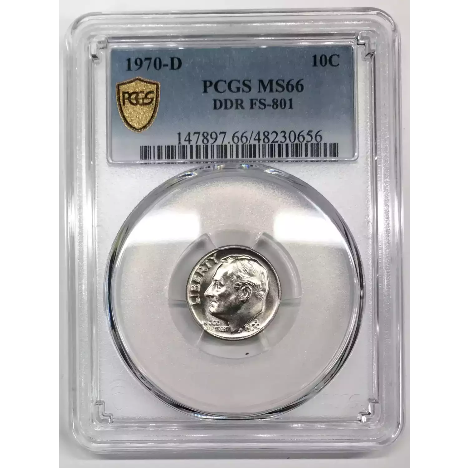 1970-D Doubled Die Reverse (DDR) FS-801 Roosevelt Dime PCGS MS-66 - PCGS Pop 29/3 - Nice fresh slab, straight from PCGS to our store.