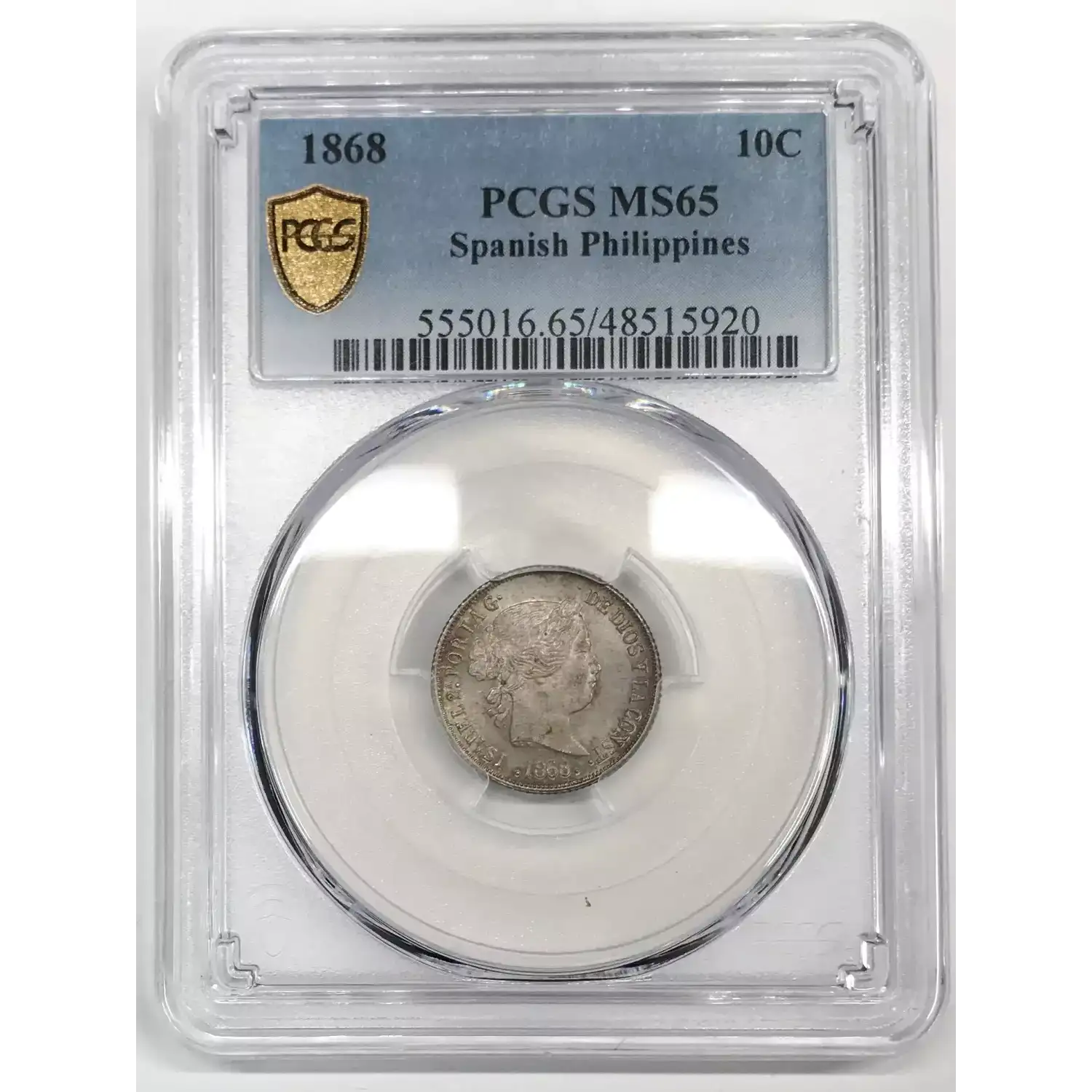 1868 SPANISH PHILIPPINES Silver 10 CENTIMOS PCGS MS-65 - KM-145 - Nice fresh slab, straight from PCGS to our store.