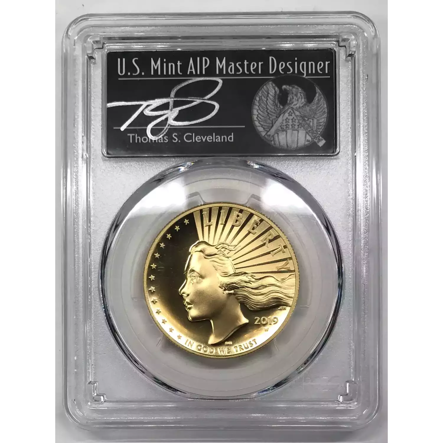 2019-W Enhanced Finish American Liberty High Relief 1 oz Gold $100 PCGS SP-70 PL - First Strike - Cleveland Signature - Freedom Label