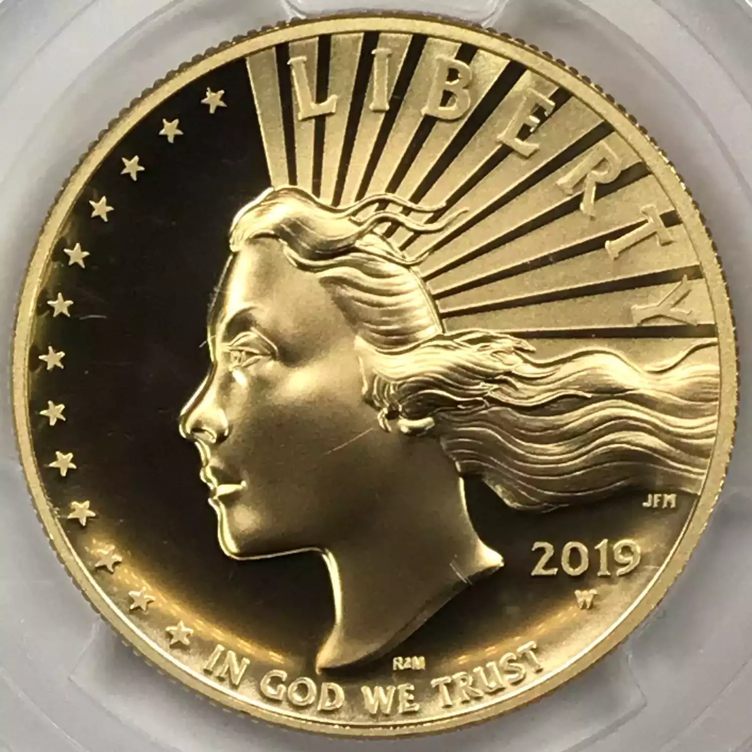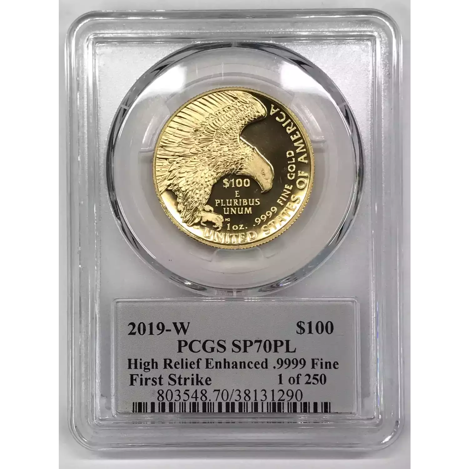 2019-W American Liberty High Relief 1 oz Gold $100 PCGS SP-70 PL Enhanced Finish First Strike Cleveland Freedom