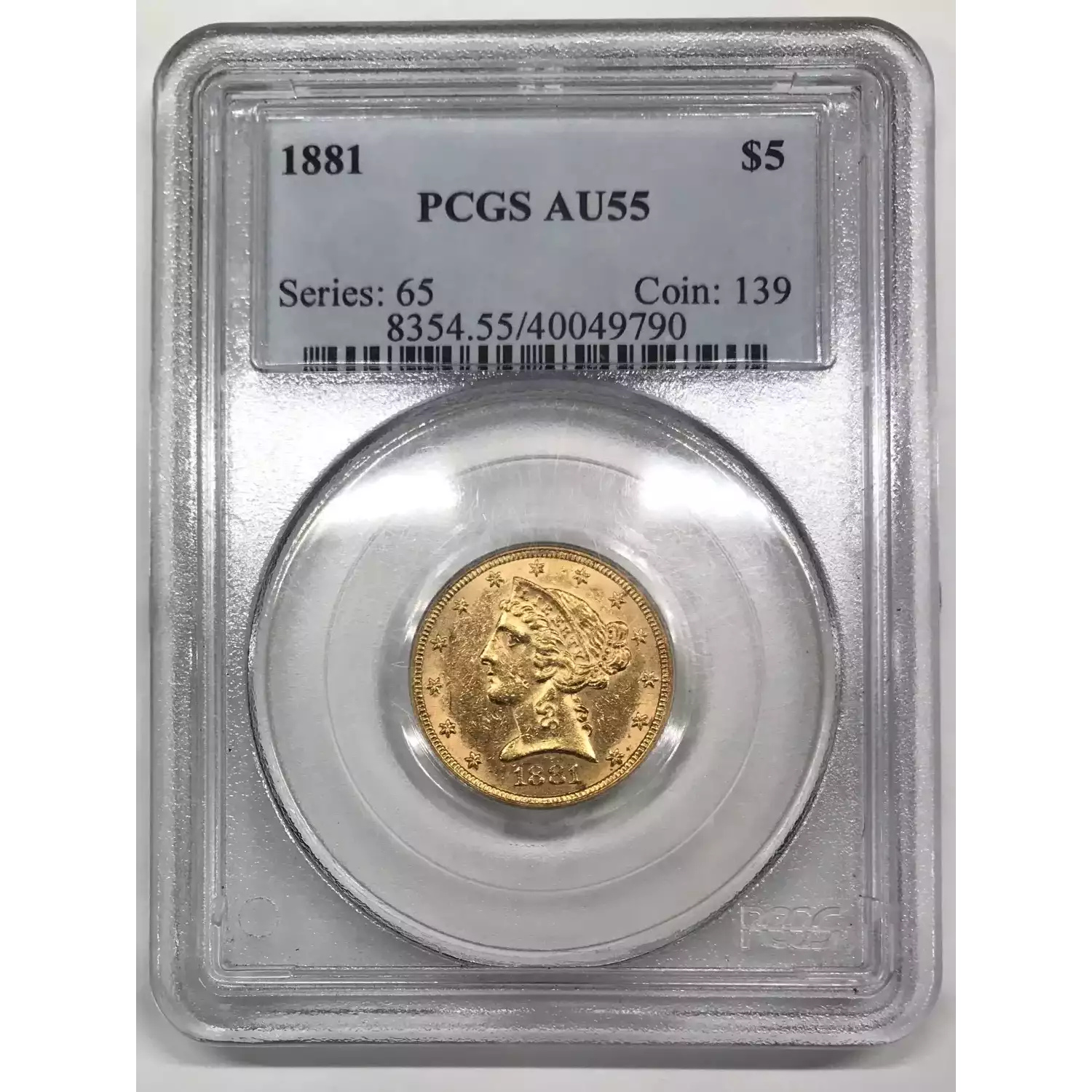 1881 $5 Gold Liberty Head Half Eagle PCGS AU-55