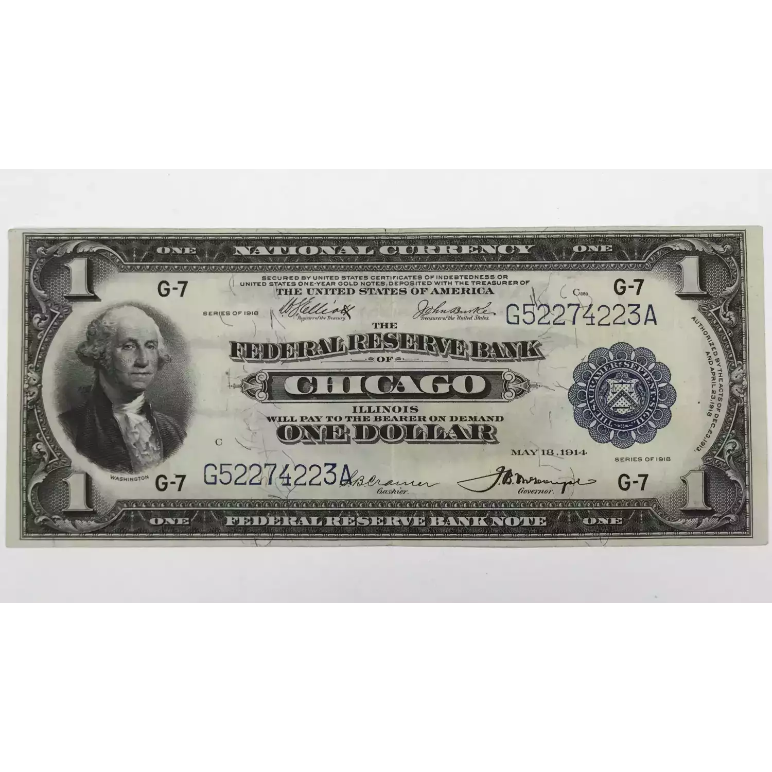 1918 $1 Chicago Federal Reserve Bank Note FR 729 - XF