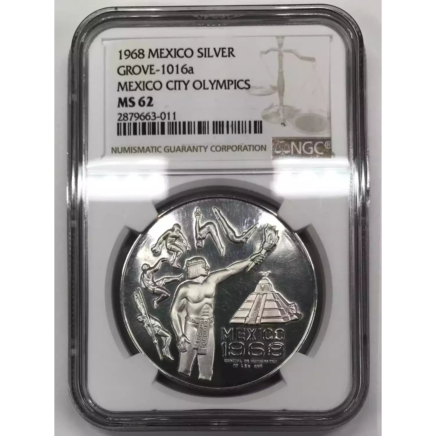 1968 Mexico Silver Medal GROVE-1016a MEXICO CITY OLYMPICS NGC MS-62