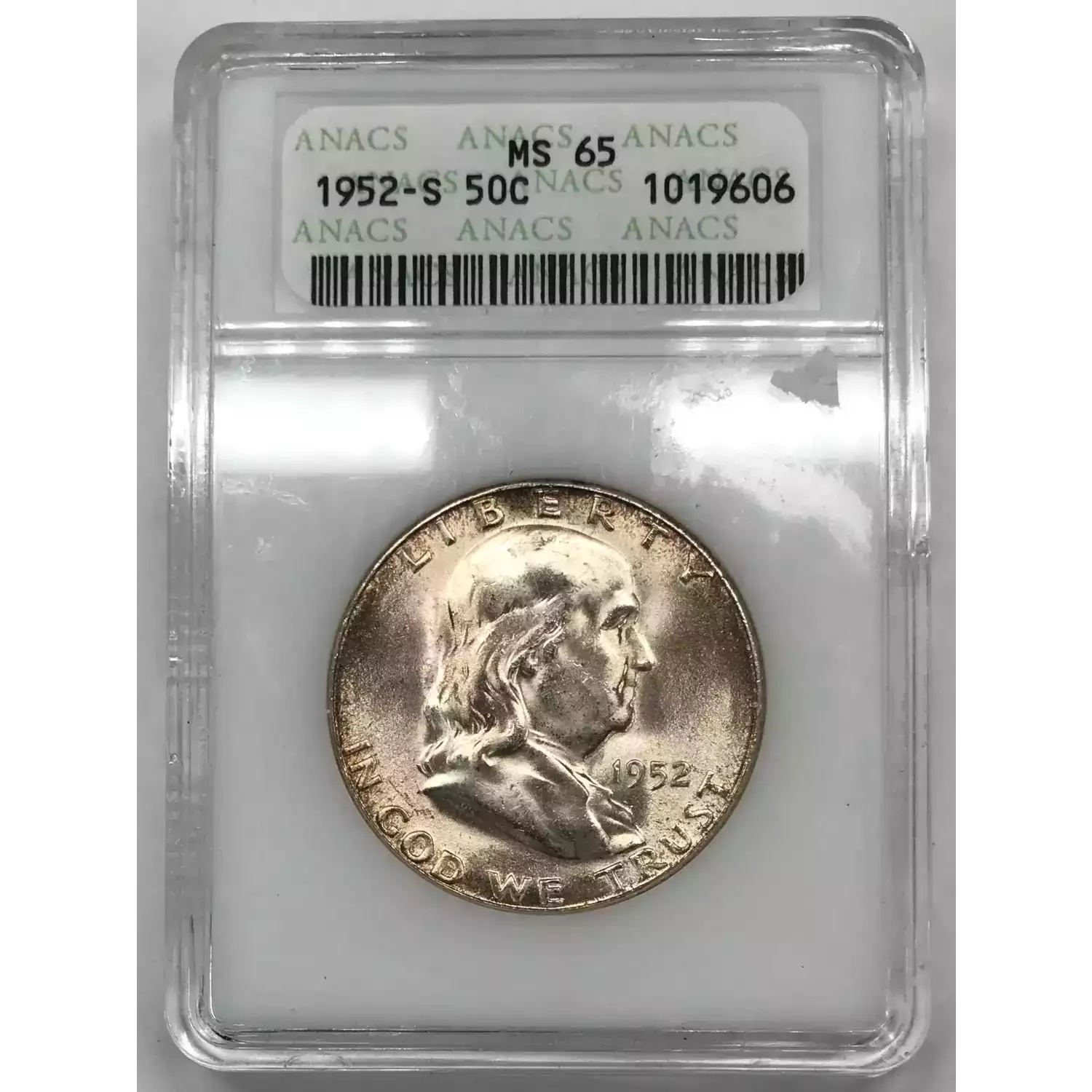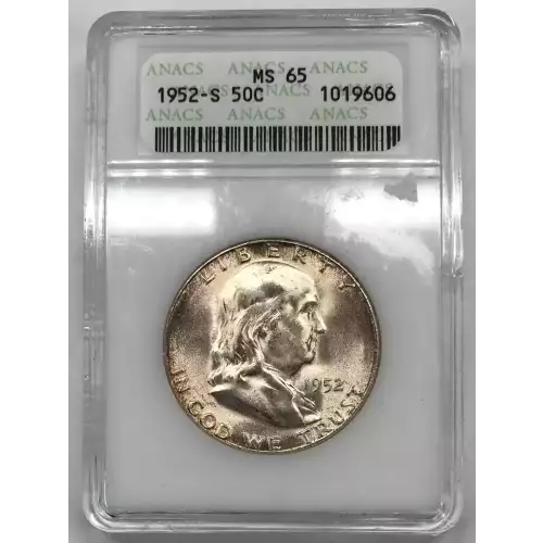 1952-S/S RPM FS-501 Franklin Half Dollar PCGS UNC Detail (wheel mark) nice attractive coin, there appear to be some lines visible on shoulder at certain light angles coin was previously in an ANACS MS65 soapbox holder (as seen in last photo) before we cracked it out to get variety attribution at PCGS see this slabbed coin in video form : https://youtu.be/Z8X6XG_hw6A