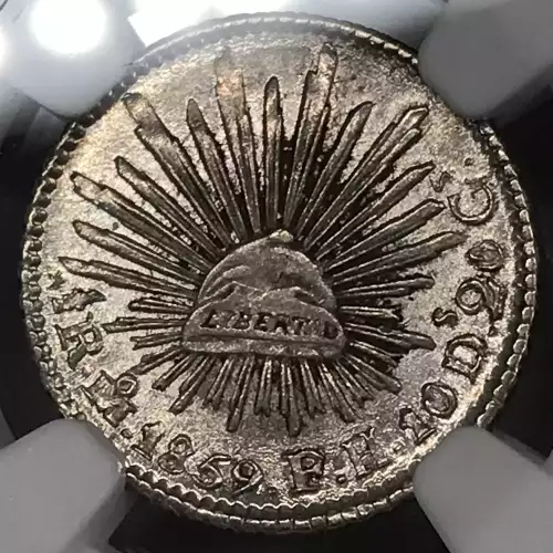 1859-Mo FH Mexico Silver 1/2 REAL NGC MS-62