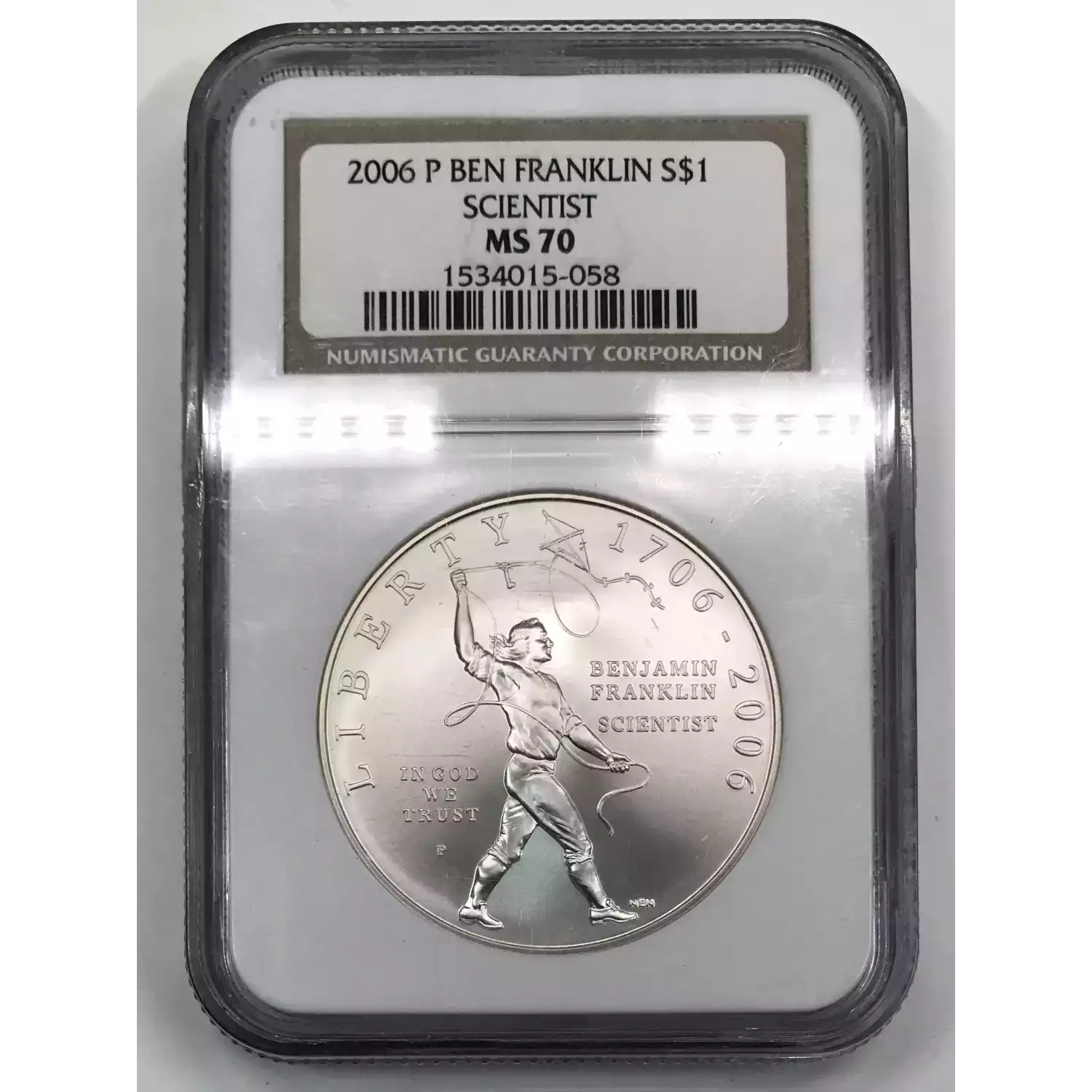 2006 Benjamin Franklin Tercentenary Scientist Commemorative Silver Dollar NGC MS-70 BENJAMIN FRANKLIN SCIENTIST