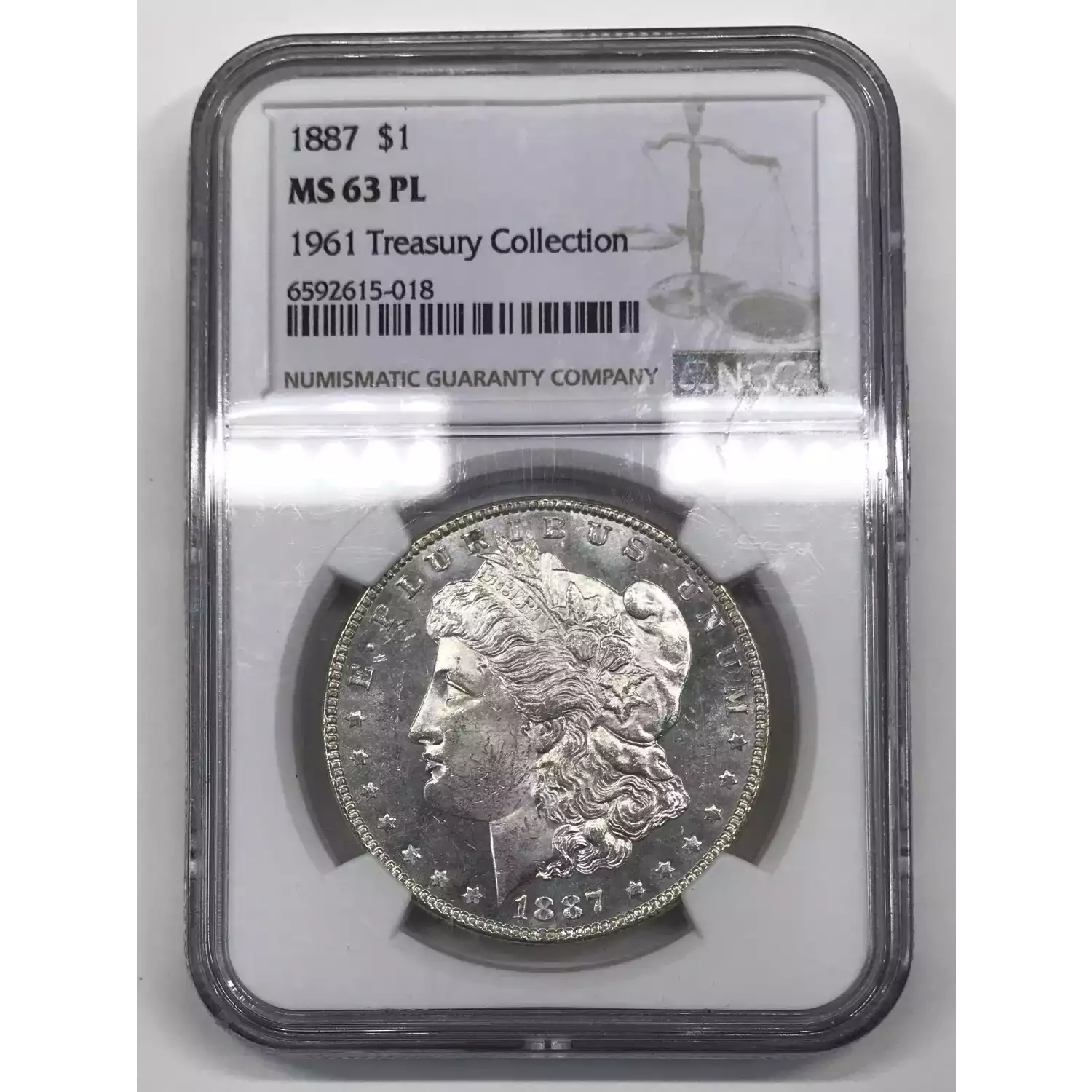 1887 Morgan Silver Dollar NGC MS-63 PL 1961 Treasury Collection