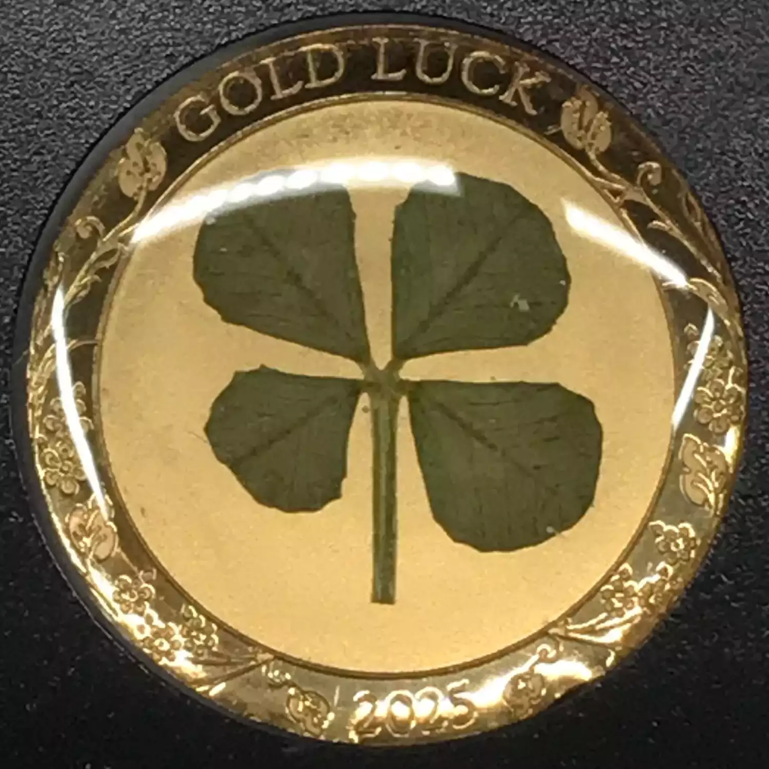 2025 Palau Real Encased Four Leaf Clover 1 Gram Gold Dollar w/ COA - Good Luck - nice large leaves, compare to ones being sold on eBay
