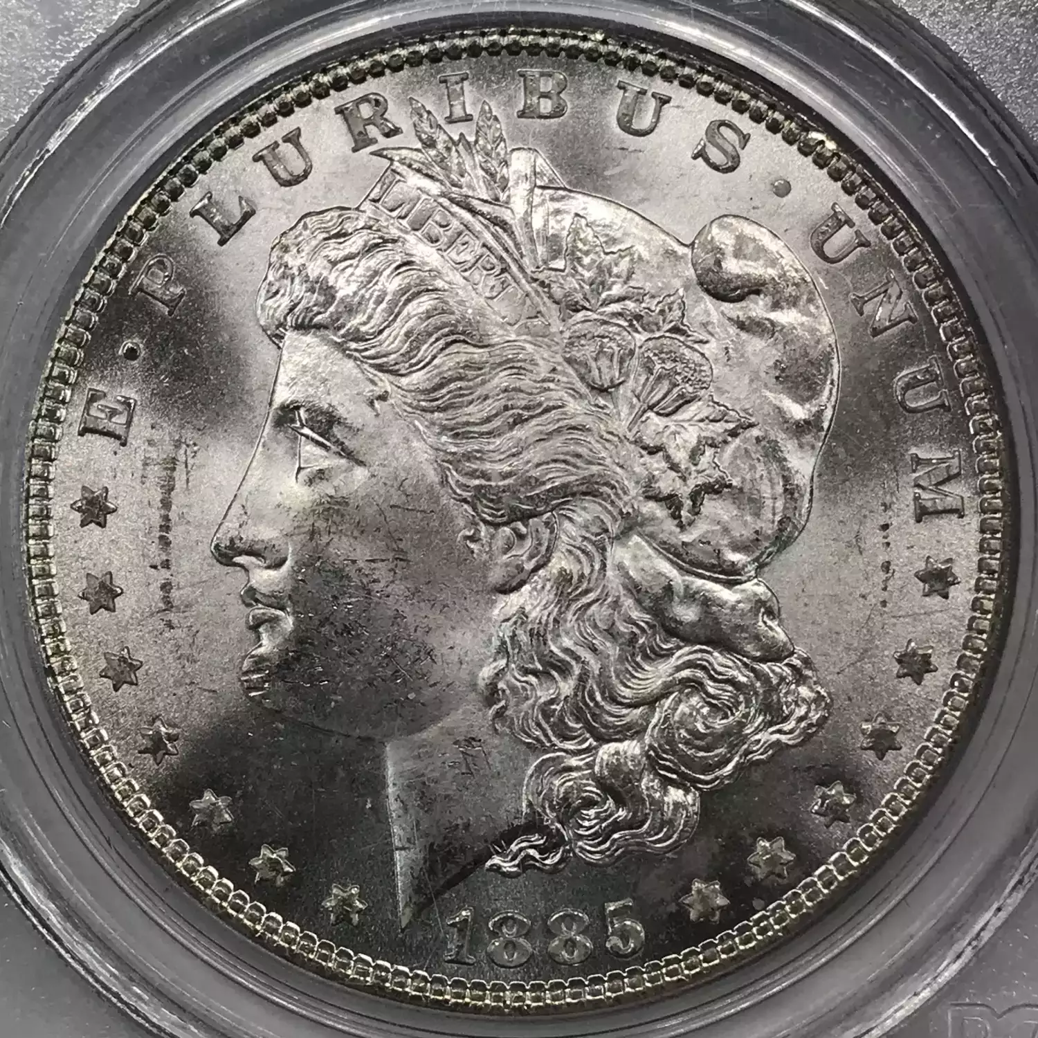 1885 P Morgan Silver Dollar PCGS MS-64 - minor slab chip (back side, lower left lip)
