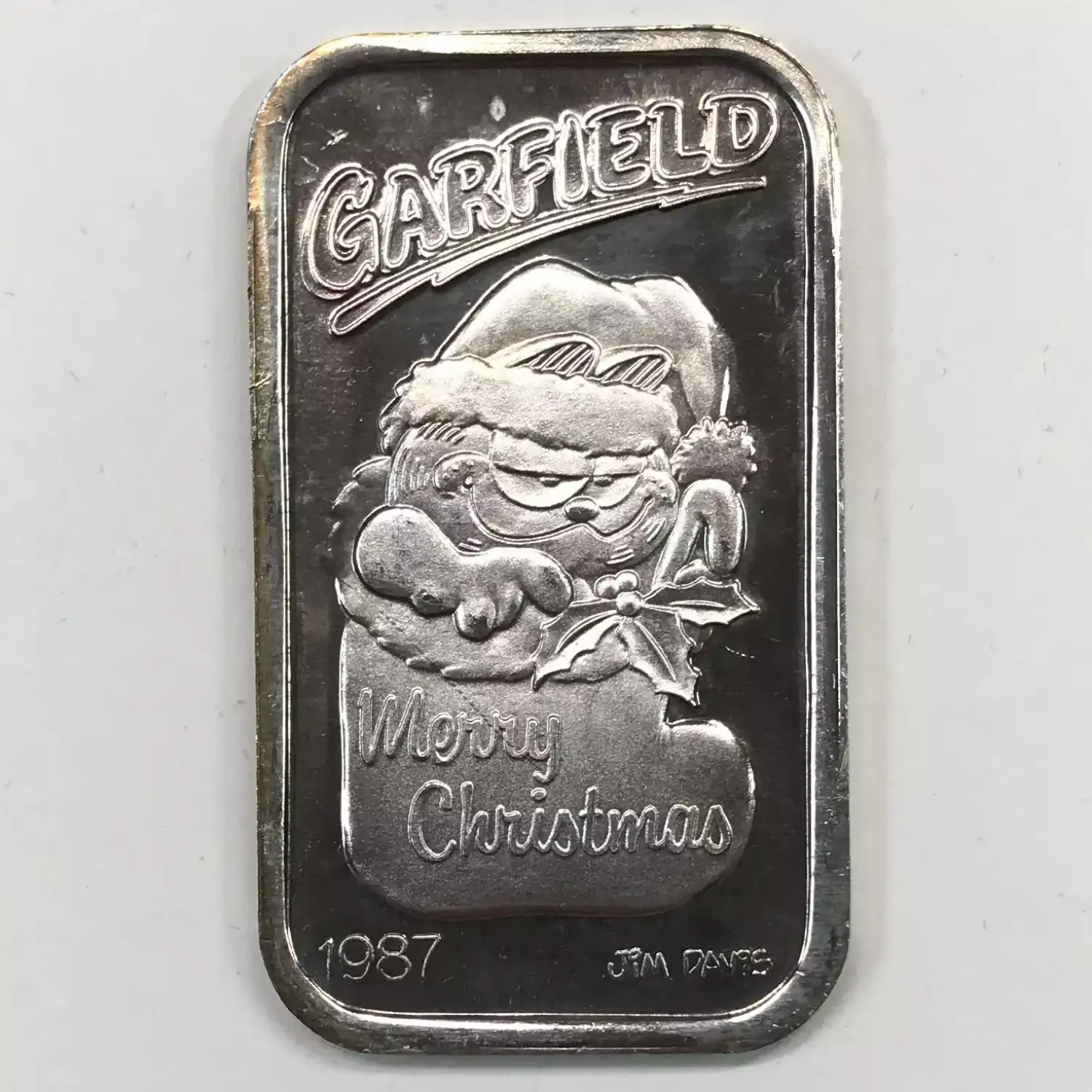 1987 Garfield Merry Christmas 1 oz Silver Bar - SilverTowne