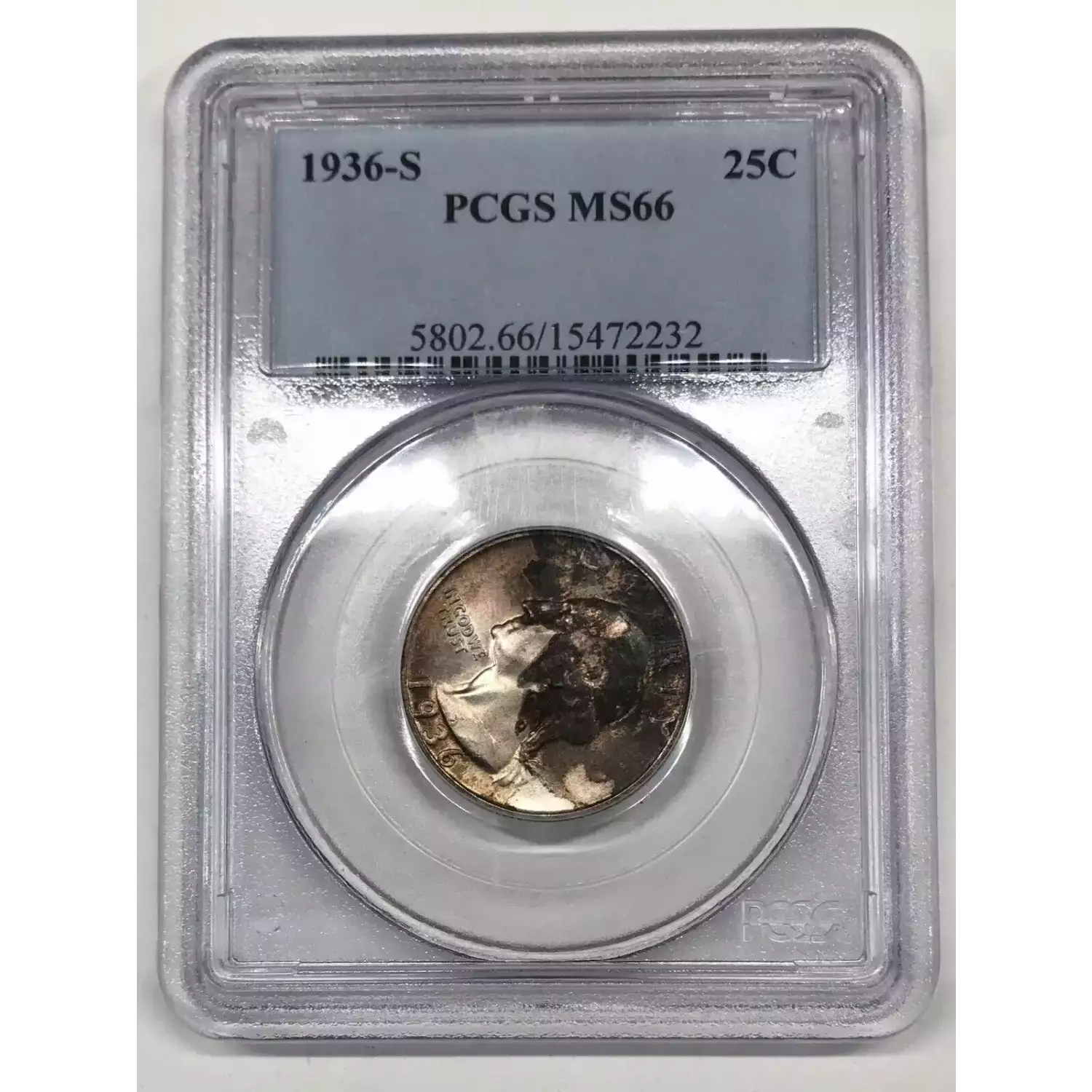 1936-S Washington Quarter PCGS MS66 - "Black Helmet" Toned