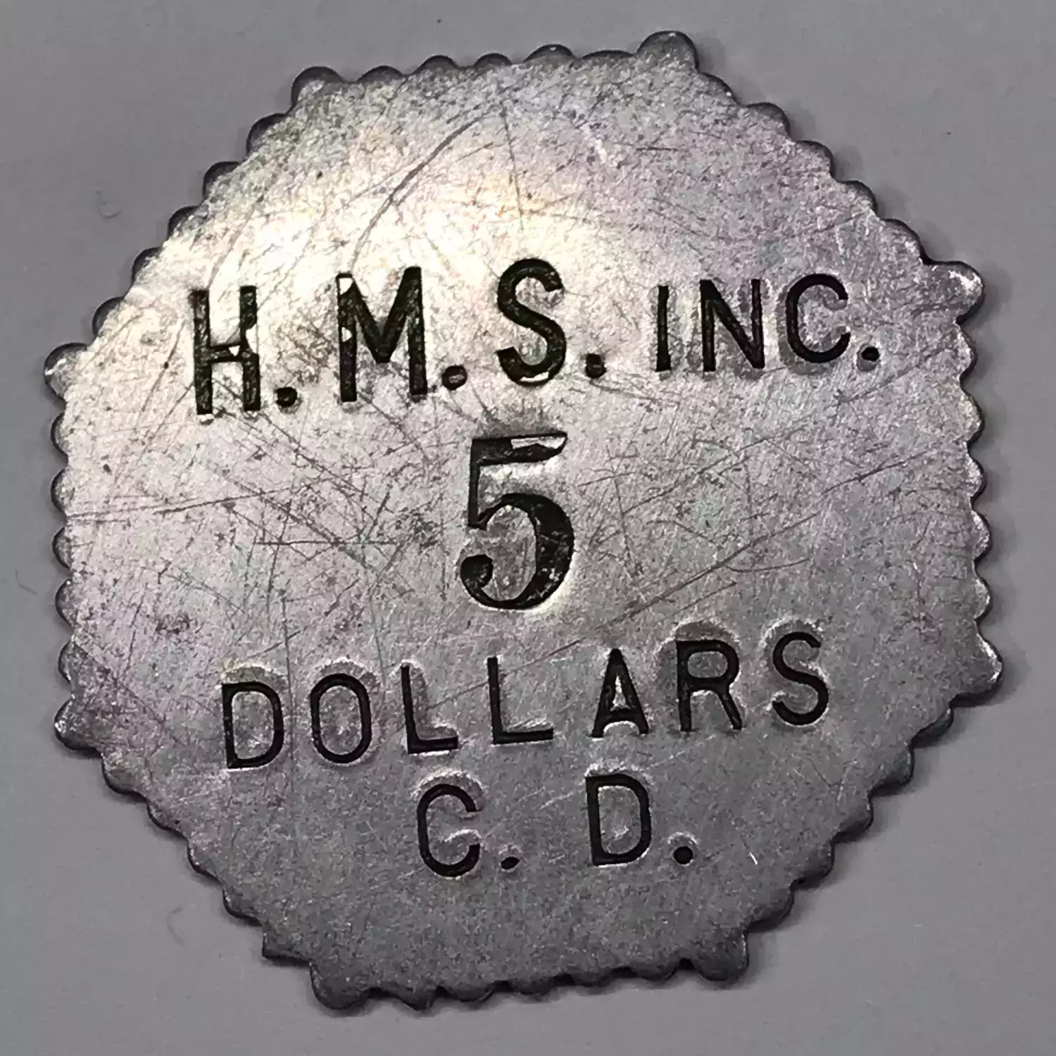 Harry Mosley Stevens (H.M.S.) Churchill Downs (C.D.) Louisville, Kentucky 5 Dollars Trade Token - scalloped, octagonal
