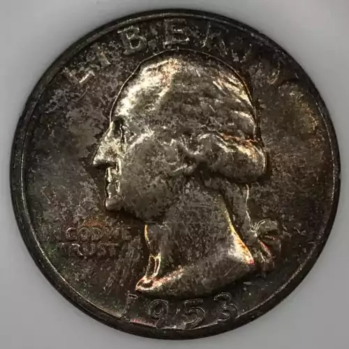 1953 P Silver Washington Quarter NGC MS-66 CAC - Rainbow Toning - Old Fatty Holder